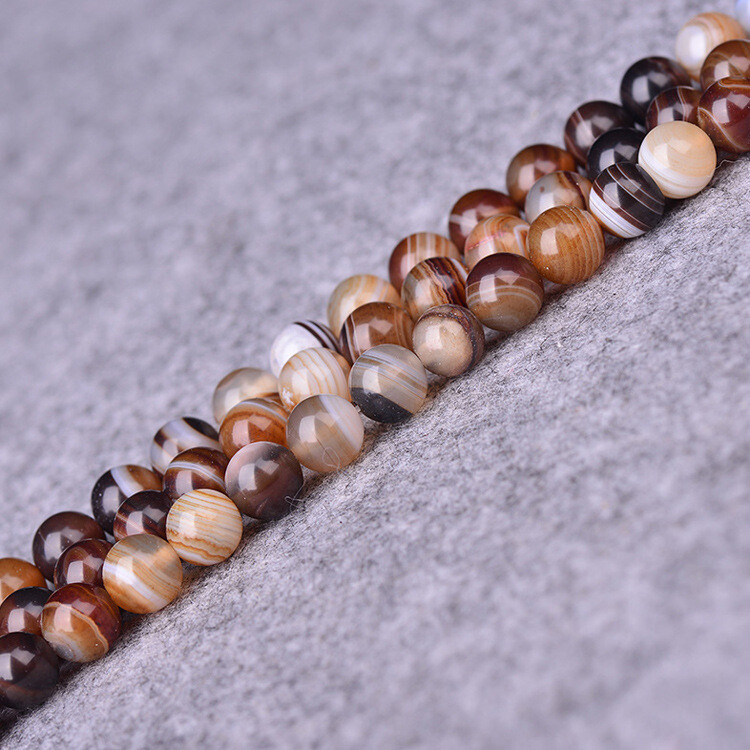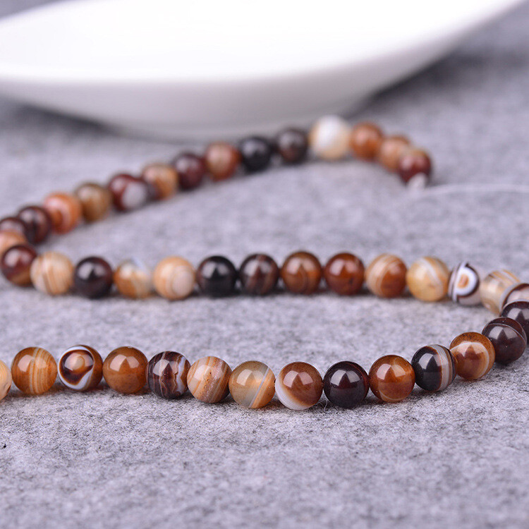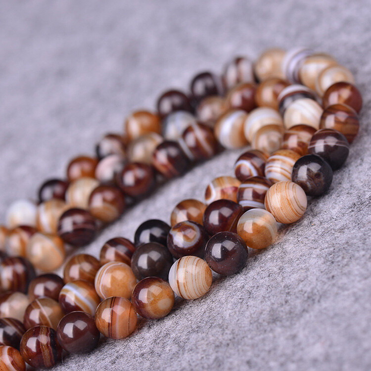 Natural Brown Stripe Agate Gemstone Round Loose Beads 6mm 8mm 10mm 12mm 15.5