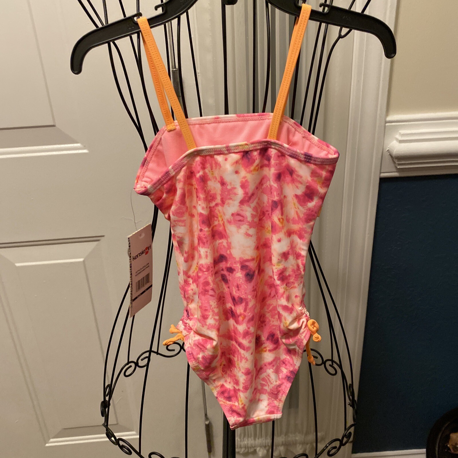New Kensie Girl Pink Orange Ruffle One Piece Bathing Suit Swim 4 Girls Summer