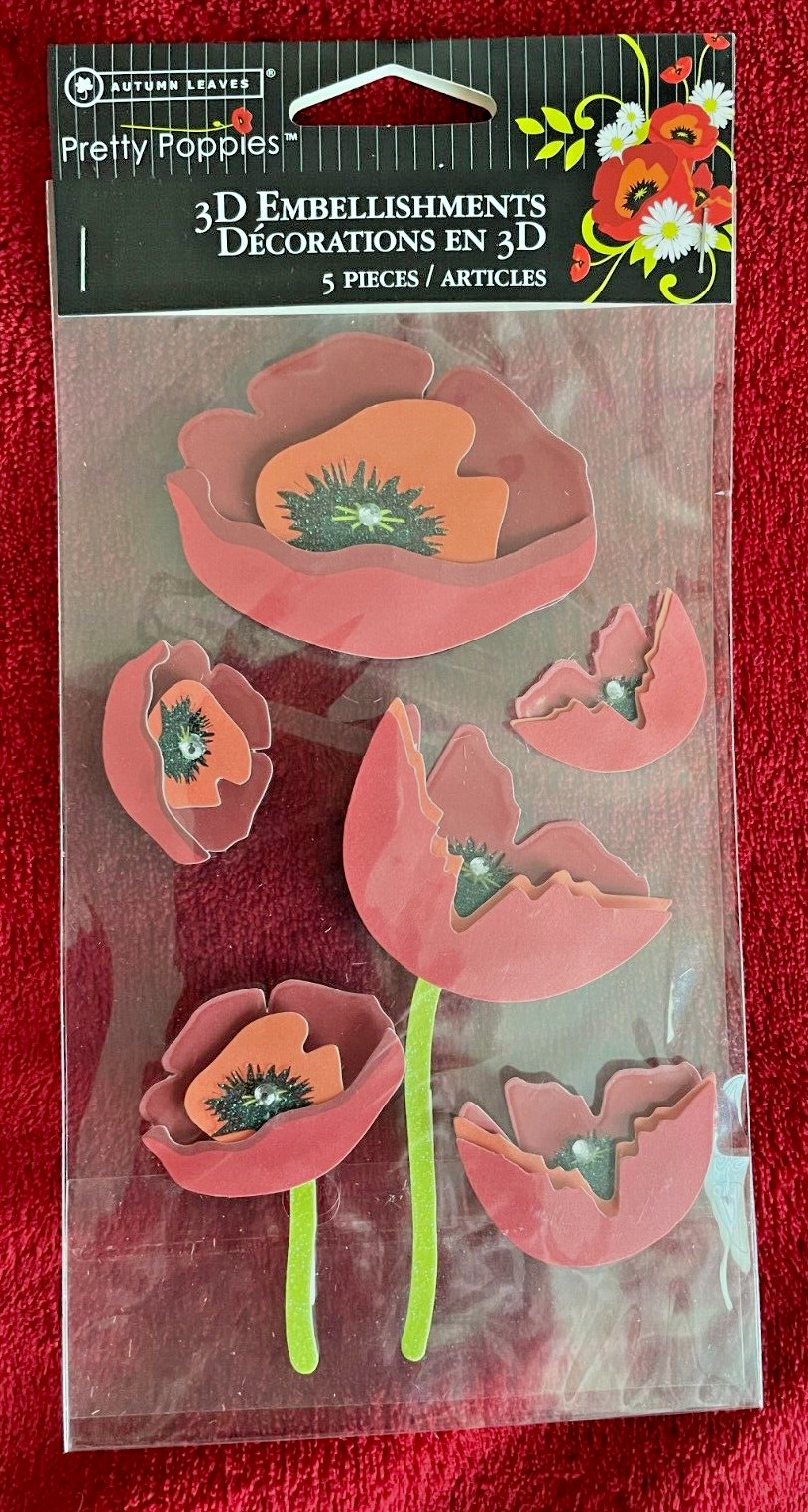 Autumn Leaves Pretty Poppies Scrapbooking Paper Embellishments; 9 Items; New