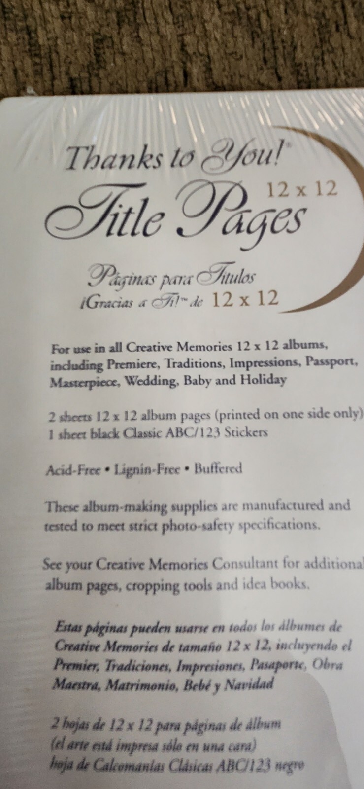 NEW Creative Memories 12x12 THANKS TO YOU Title Pages Refill Black Letters