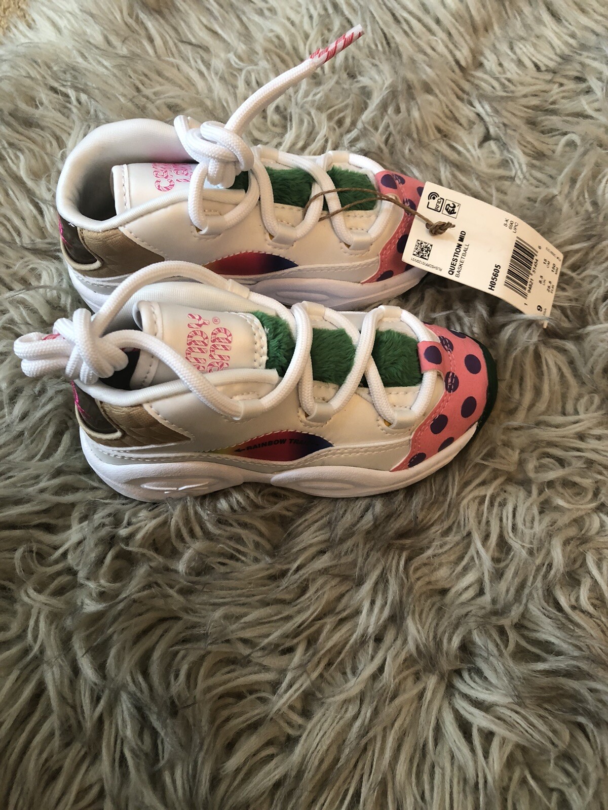 Reebok infants Iverson Question Mid X CandyLand Basketball H05605 White/Green.