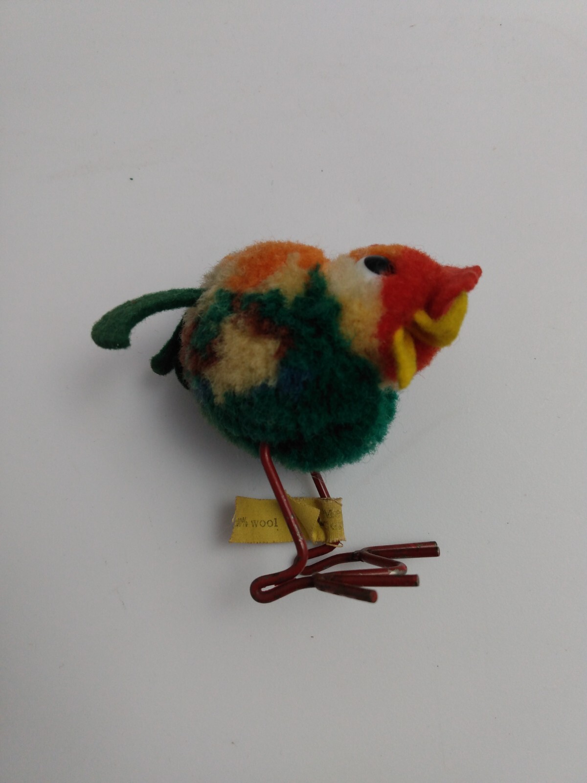 Vintage 2 Woolen Pom-Pom Rooster 1508.0 Button Tag Metal Feet Steiff Germany