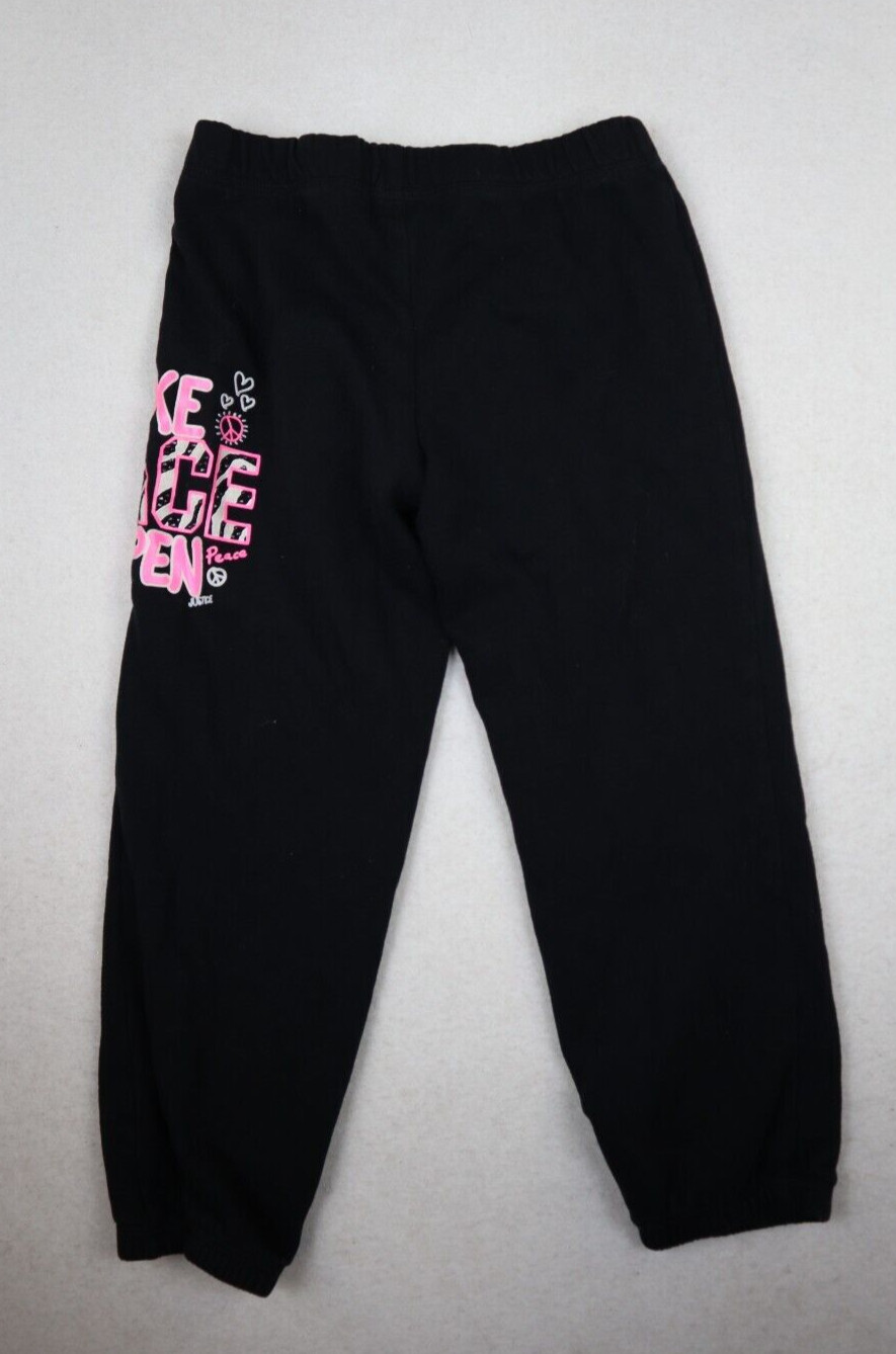JUSTICE - GIRL'S BLACK JOGGER SWEATPANTS - MAKE PEACE HAPPEN - SIZE 7