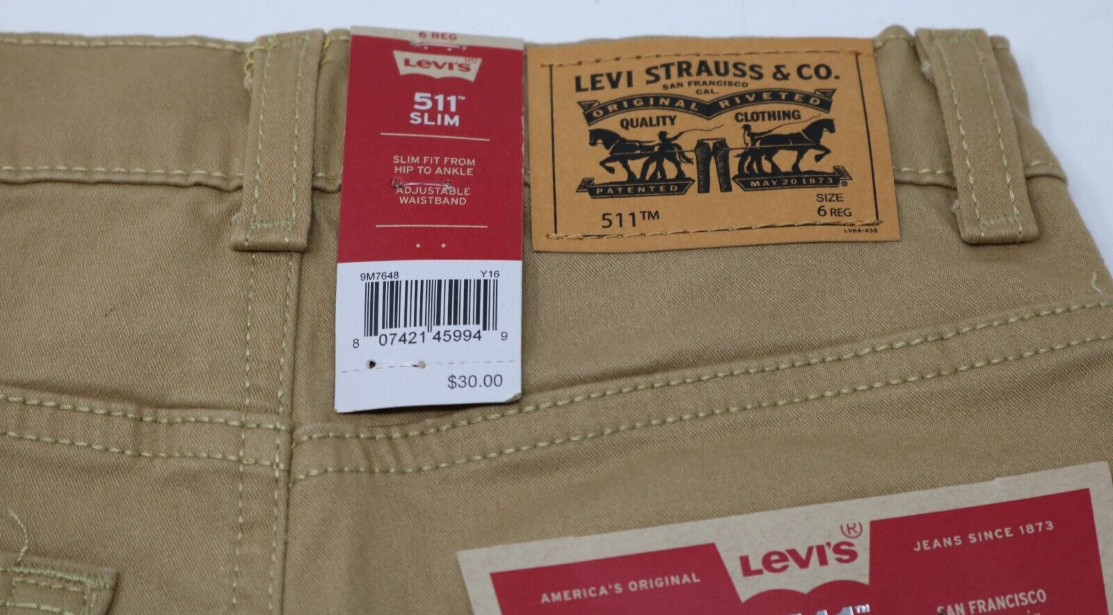 как выглядит Levis Boys 511 Slim Fit Brushed Twill Pants Gold Tan 6 Regular Stretch NWT фото