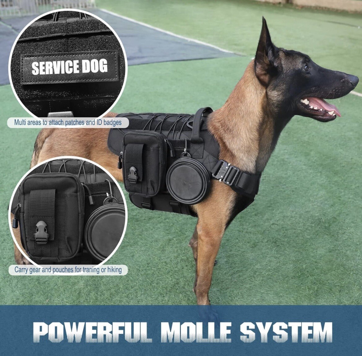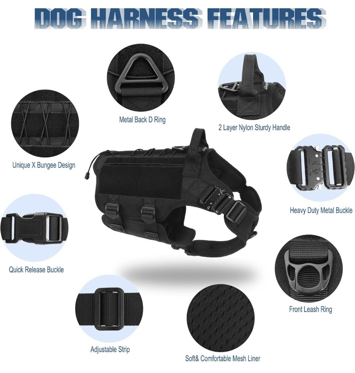 PETNANNY Tactical Service Dog Harness Emotional Support No Pull ESA - Black - XL