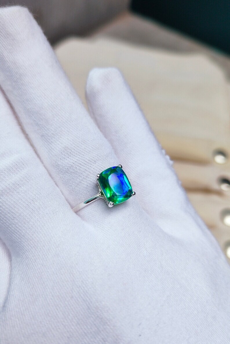 925 Sterling Silver Peacock Quartz Ring Cushion Cu peacock quartz ring handmade