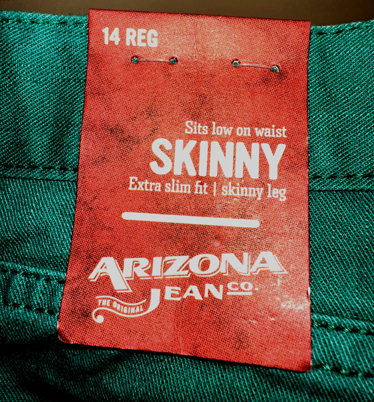 Arizona Jeans Girls Size 14 Reg Skinny Green 100 Cotton Adjustable Waist New