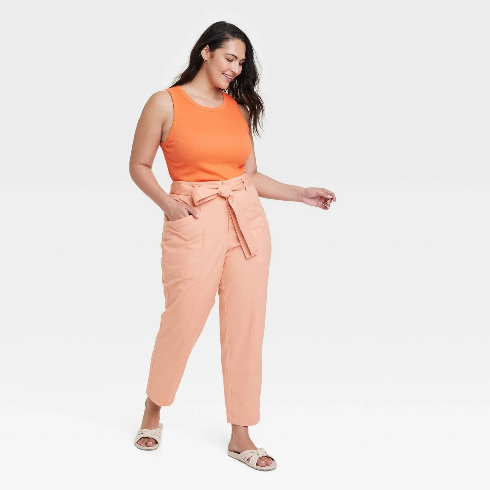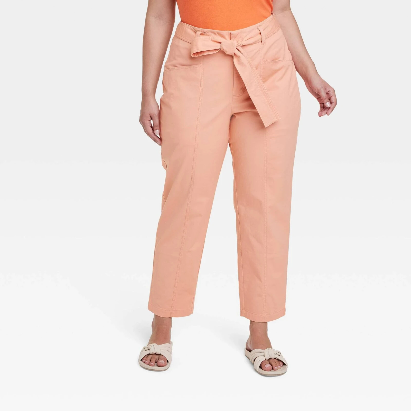 A New Day Women's High-Rise Tapered Ankle Tie-Front Pants Peach Size 8