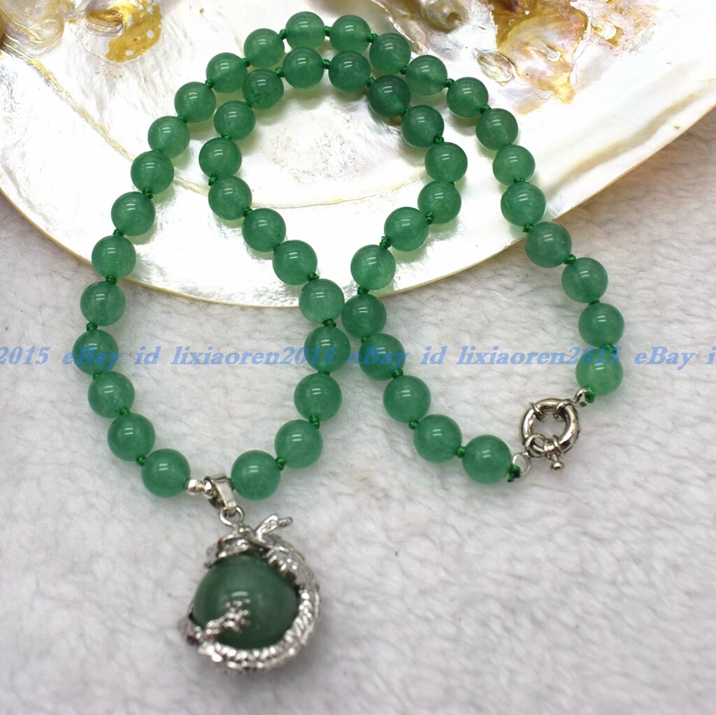 как выглядит Natural Green Jade Jadeite Round Gemstone Beads Pendant Necklace 18" AAA фото