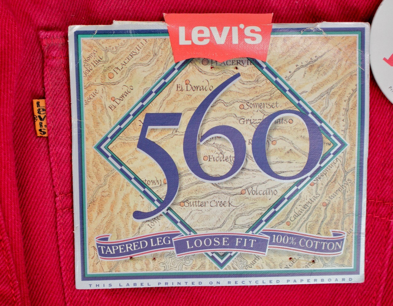 как выглядит Mens VTG 1990s NOS Red Levis 560 Loose Fit Tapered Leg Jeans Sz 31x34 90s фото