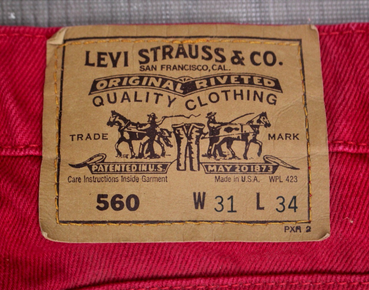 Men's VTG 1990s NOS Red Levi's 560 Loose Fit Tapered Leg Jeans Sz 31x34 90s
