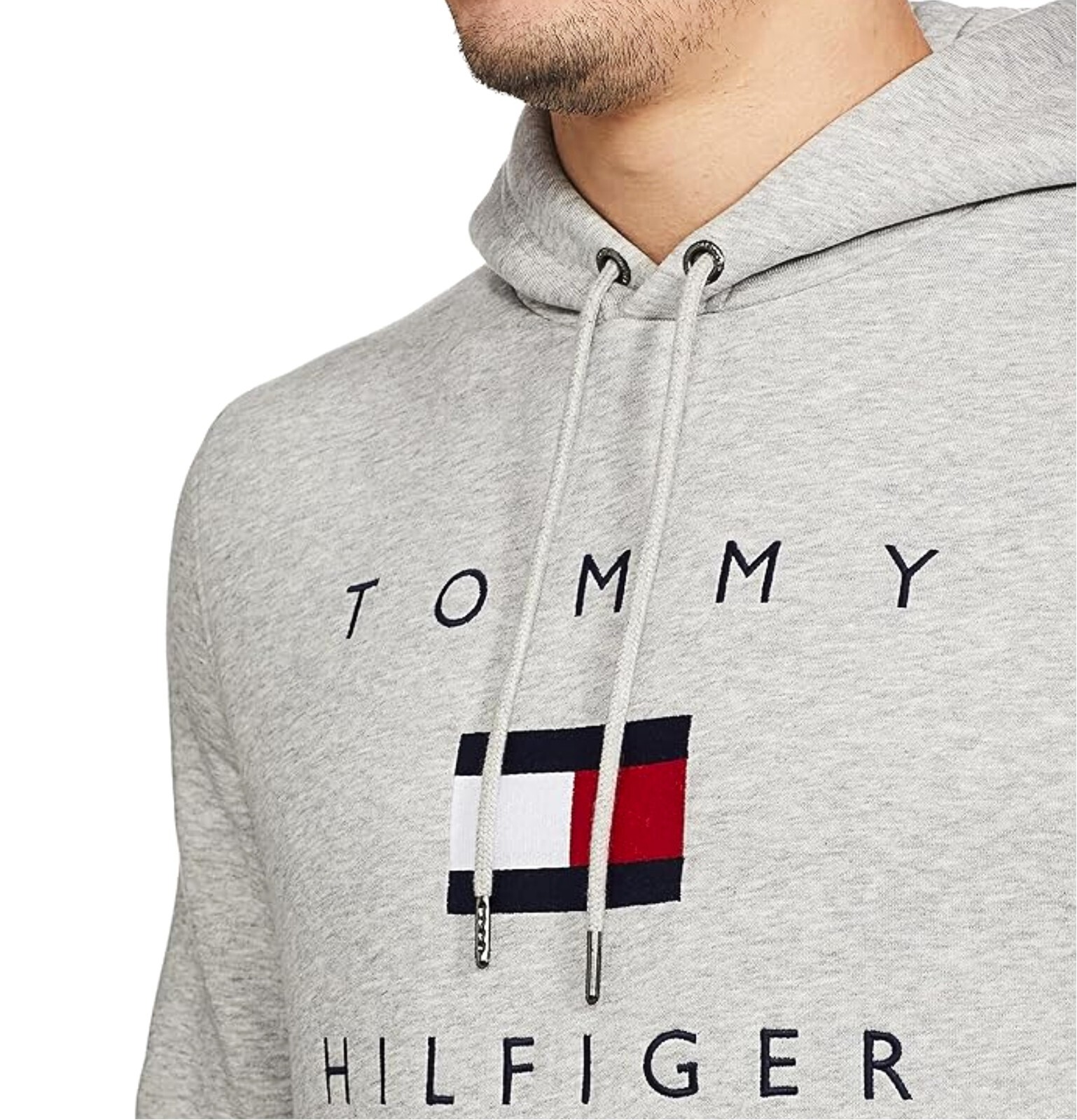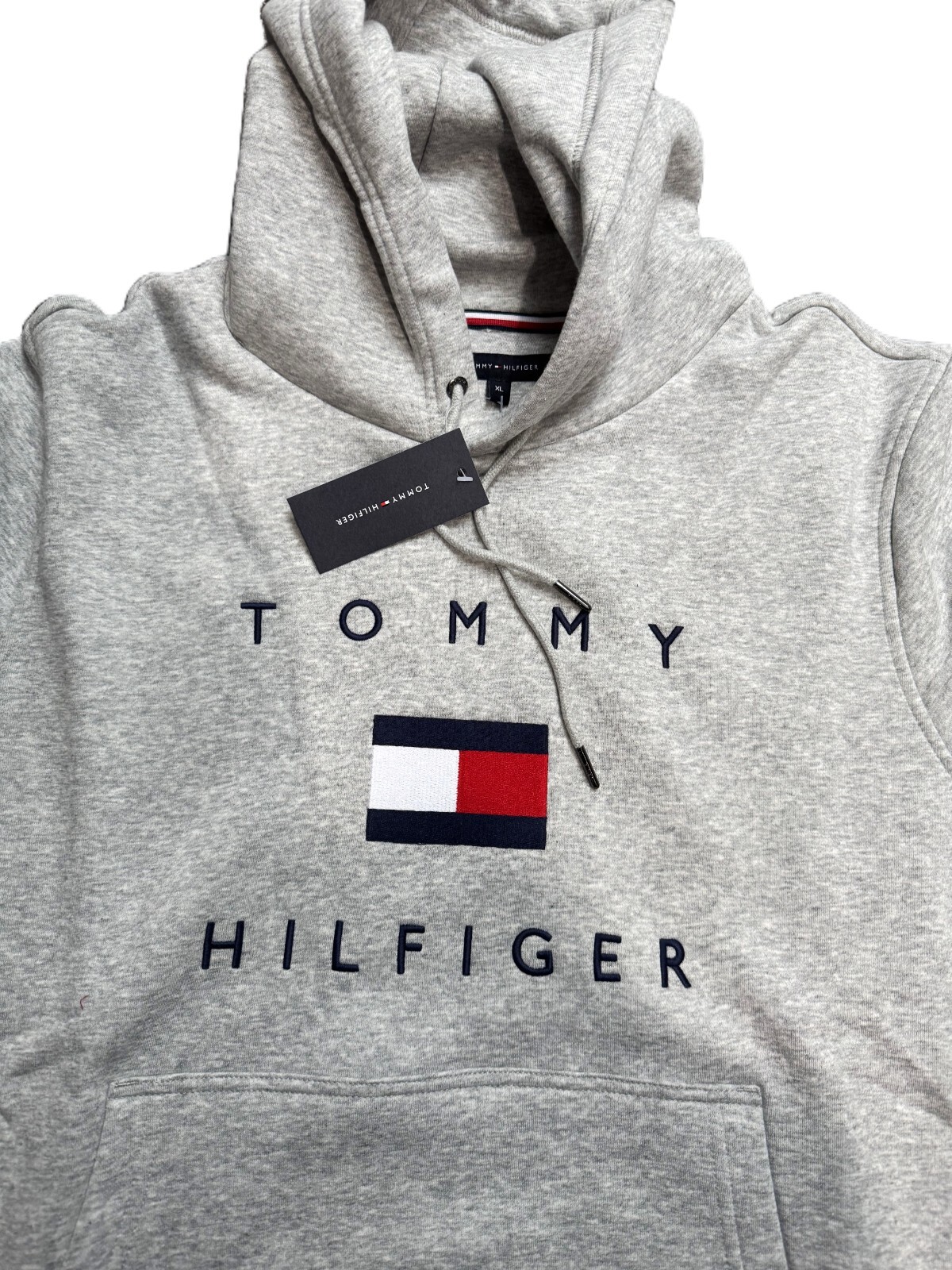 как выглядит NWT - TOMMY HILFIGER Mens Flag Logo Pullover Fleece Hooded - GREY - S - XXL фото