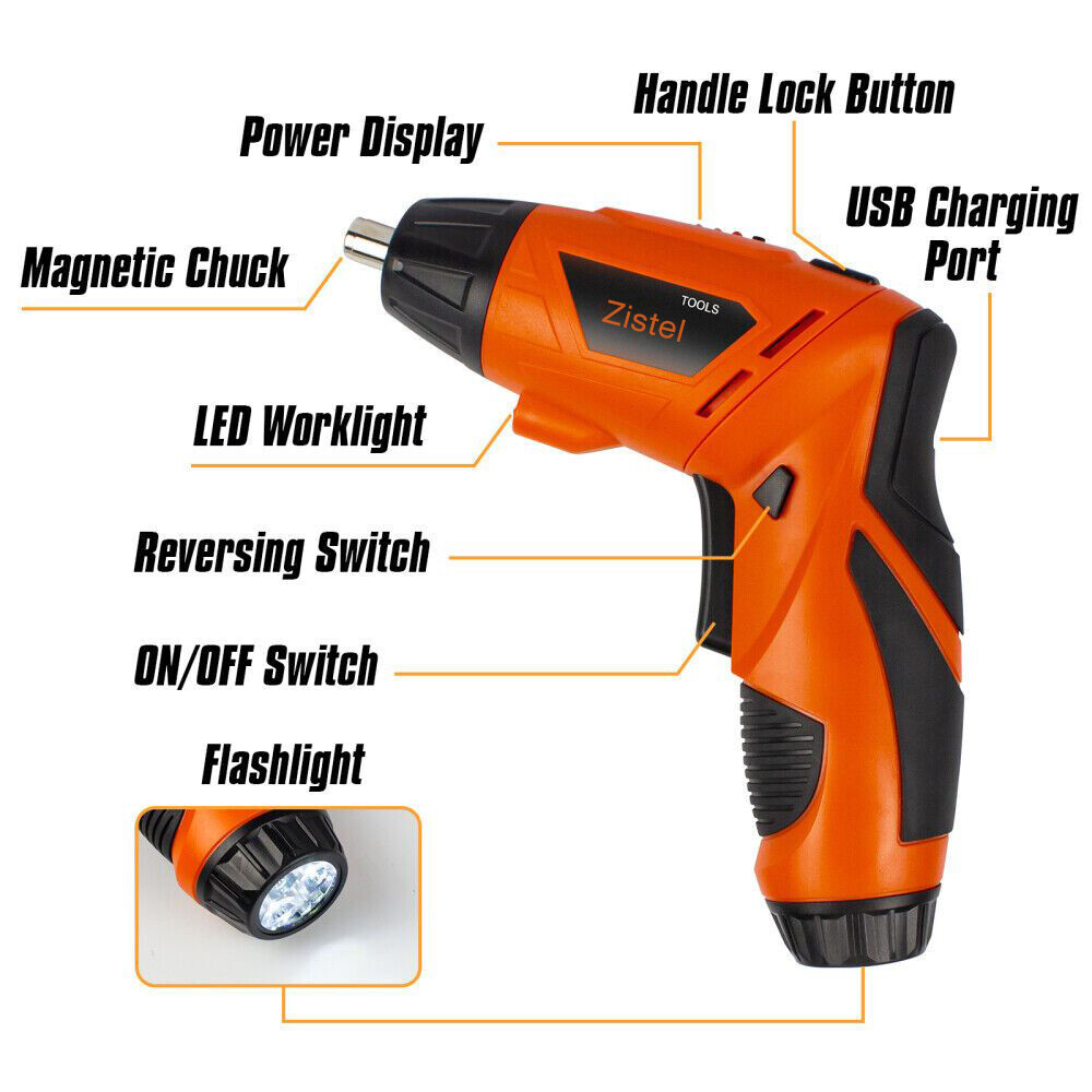Cordless Screwdriver Drill Kit Electric Rechargeable Power Tool Set w/ 1 Battery