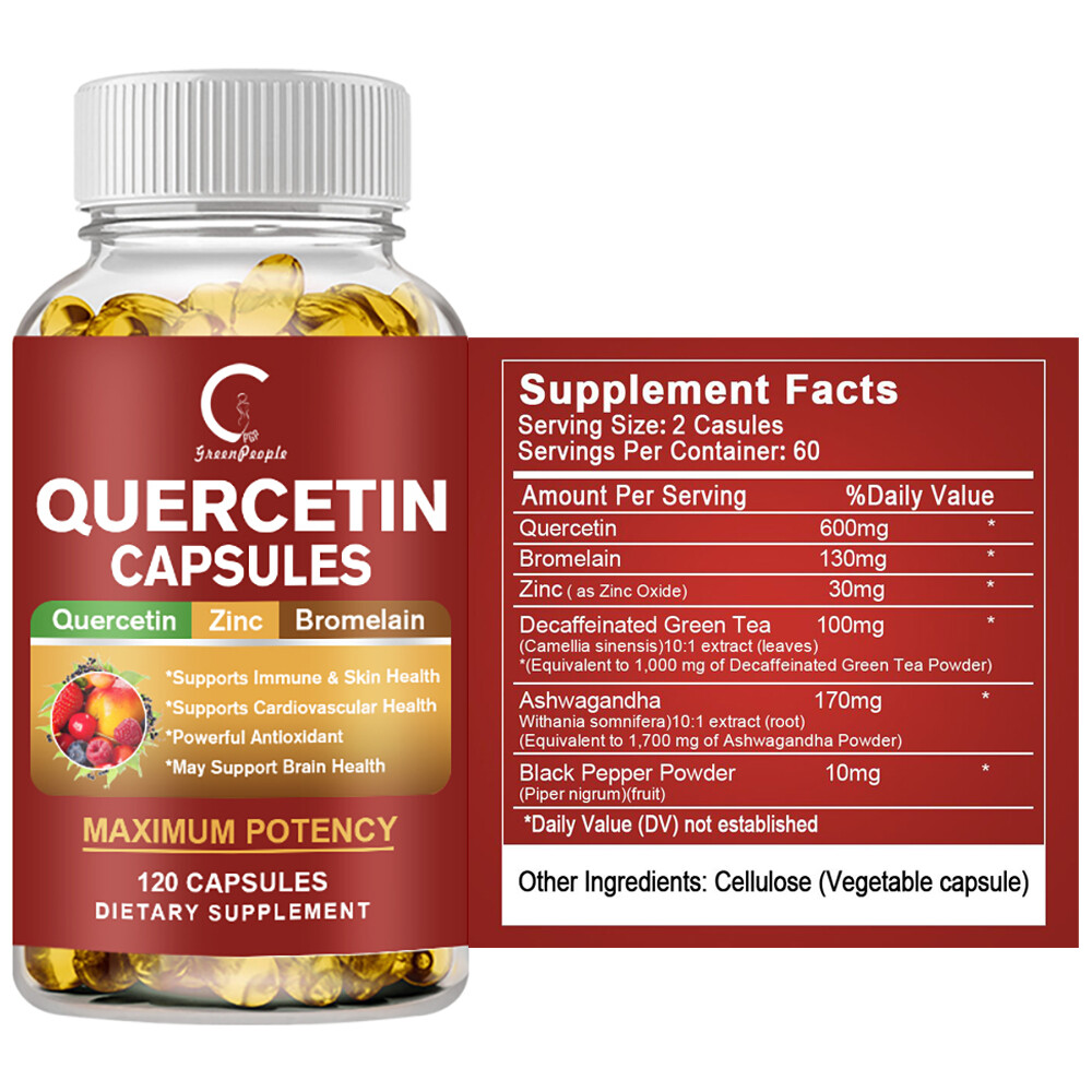 Quercetin with Bromelain amp; Zinc Natural Immune Support Supplement 600MG 120p