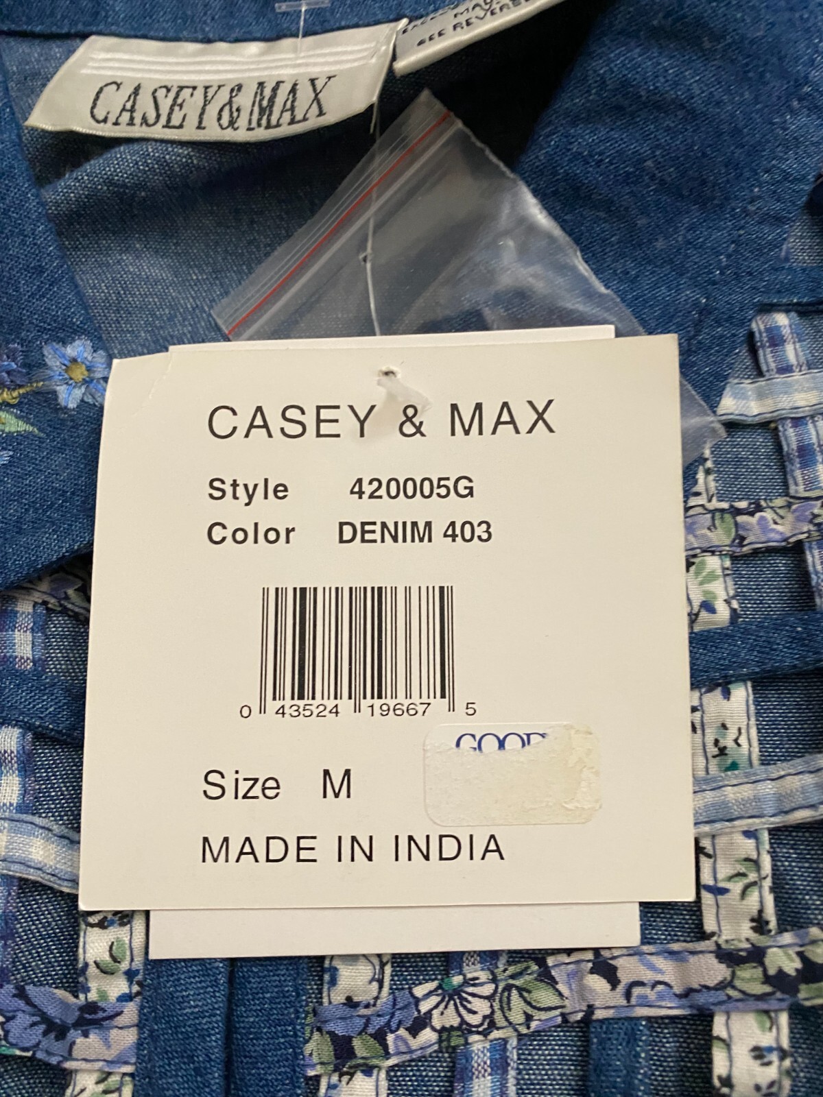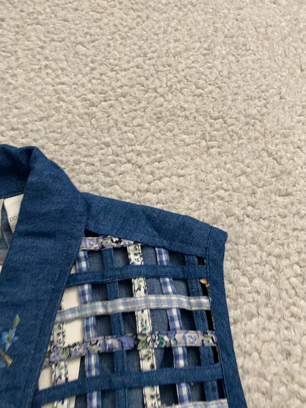 как выглядит Casey Max Women Floral Plaid Basket Weave Hollow Out Denim Vest Blue Size M фото