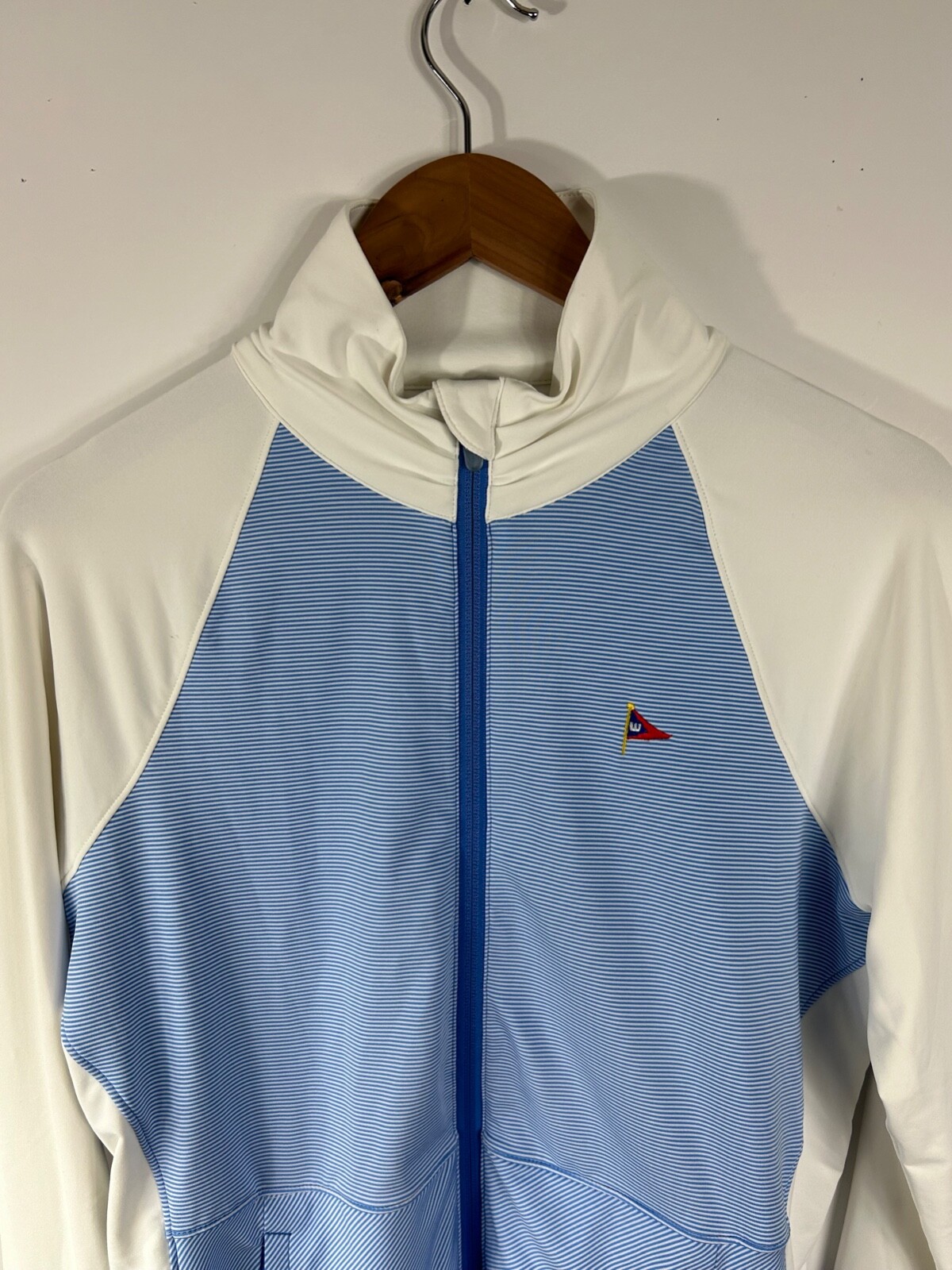 как выглядит Peter Millar Jacket Womens Large L Active White Blue Striped UPF 50 Full Zip фото