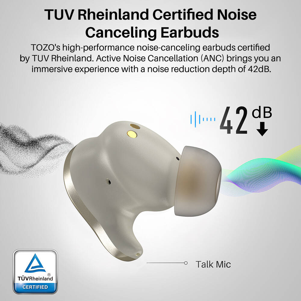 Особенности: Replaceable Ear Tips, Touch Control, Volume Control, ANC Hybrid Active Noise Cancellation, ENC Call Environmental Noise Cancellation, Real-Time LED Power Displays, OrigX Pro, LDAC & Hi-Res Audio Wireless, Stereo, Support TOZO APP, EQ Mode, Waterproof IPX6