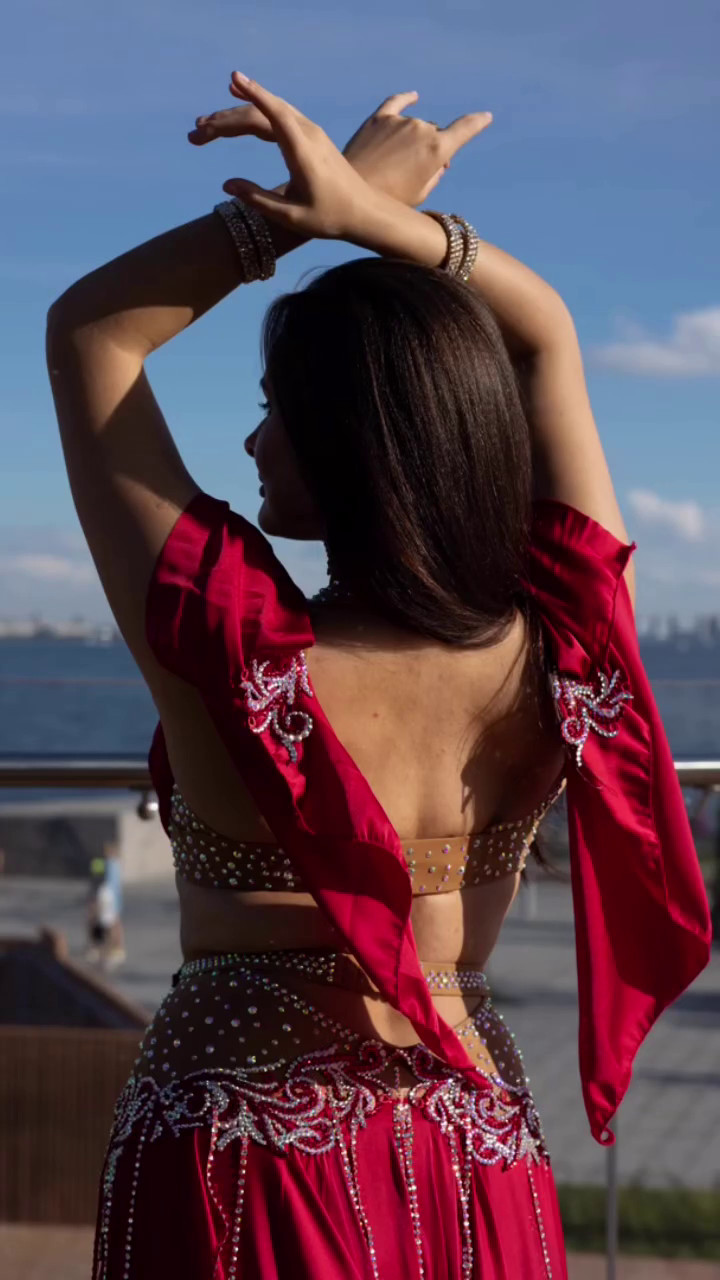как выглядит RED ART SILK BELLY DANCE COSTUMES OUTFIT DRESS WITH ACCESSORIES SET, фото