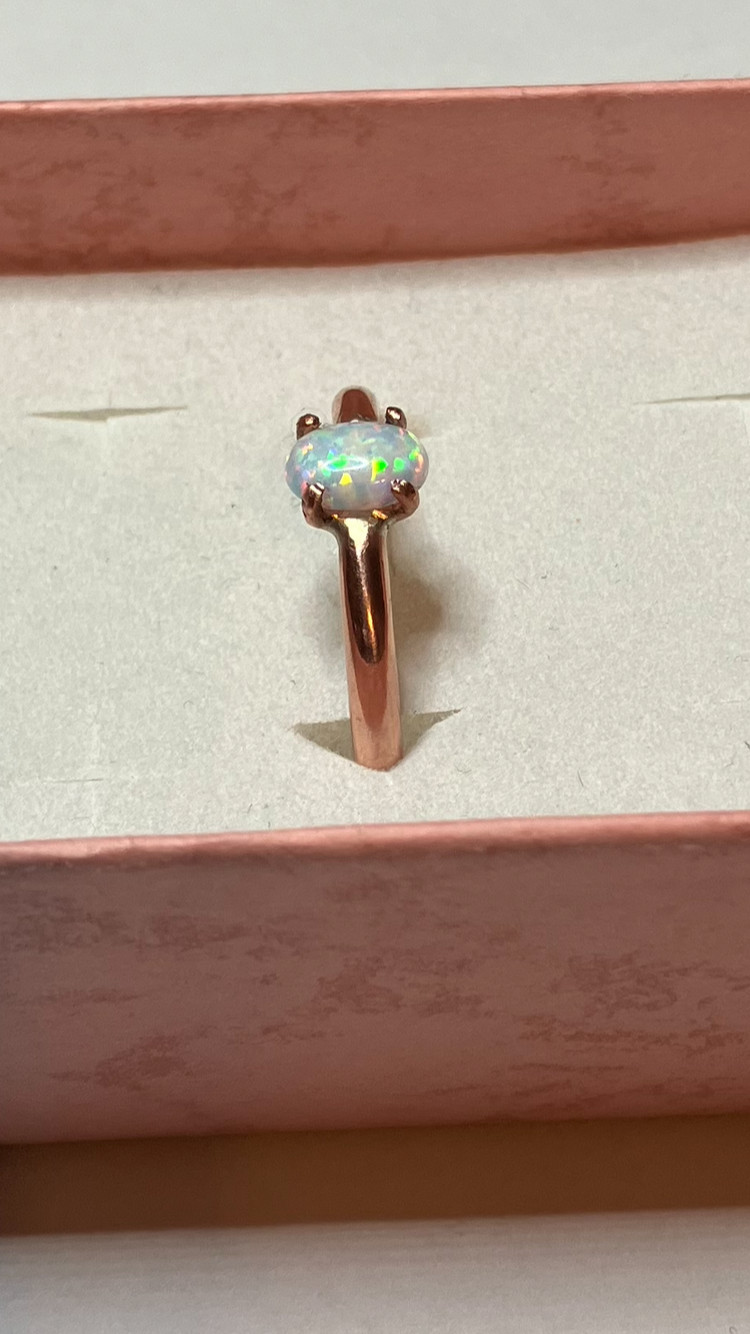 как выглядит 209B- Hand-Crafted Size 8 Copper Ring with a 0.30ct White Lab Created Opal фото