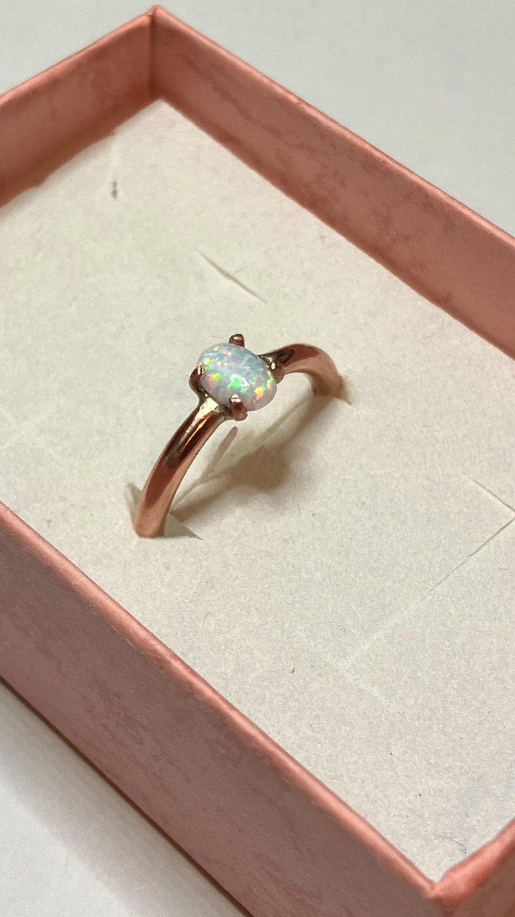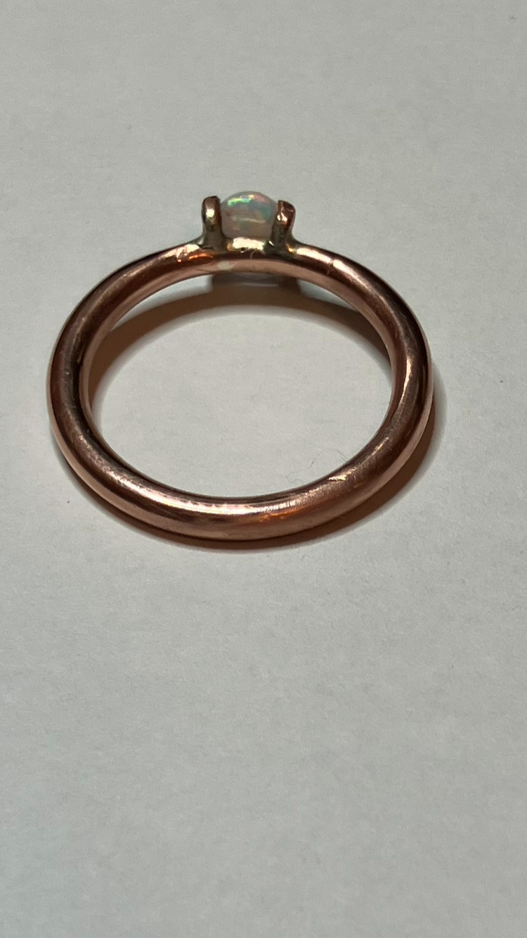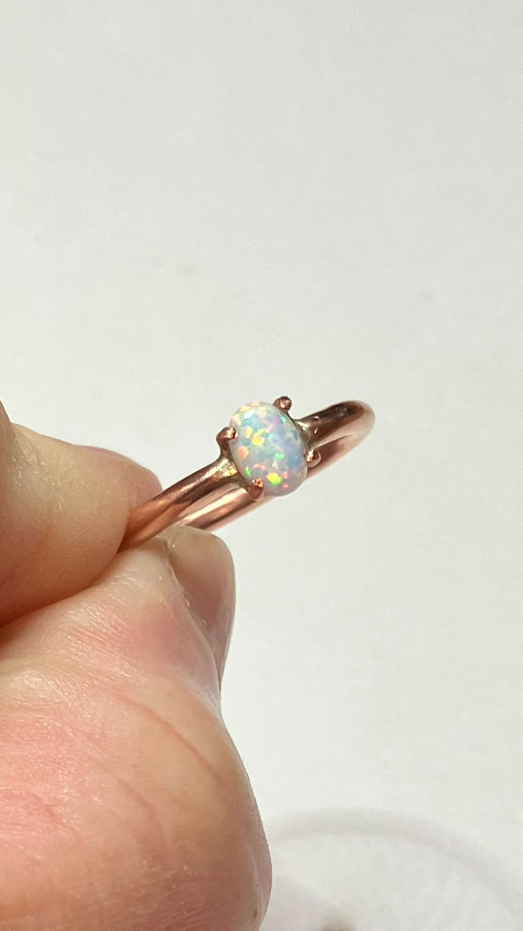 209B- Hand-Crafted Size 8 Copper Ring with a 0.30ct White Lab Created Opal