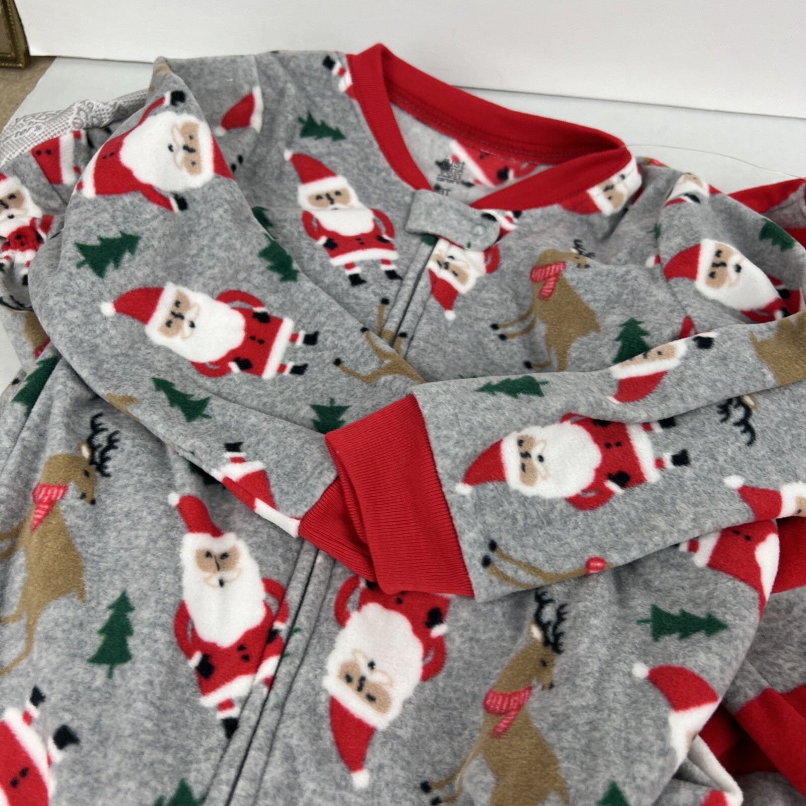 как выглядит Carters Christmas Sleeper Pajamas 3T Set of 2 Santa Reindeer Fleece Jumper фото