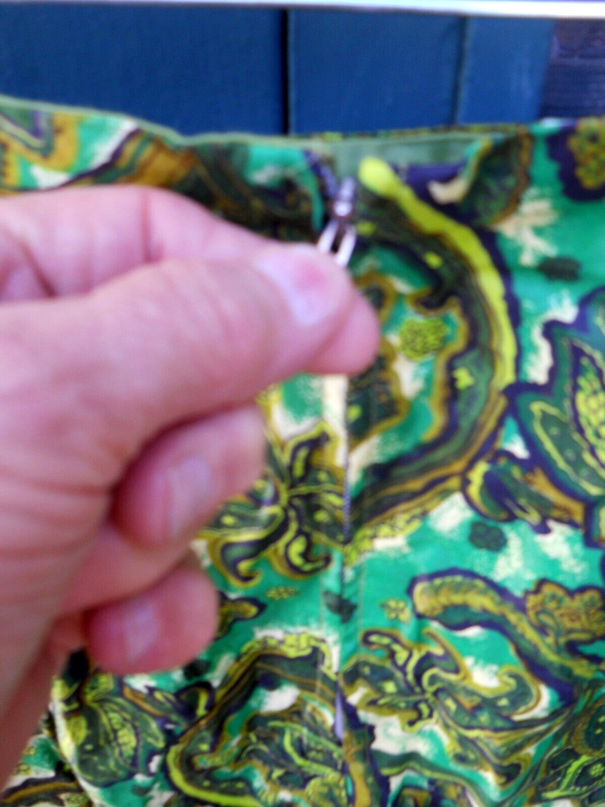 VINTAGE 70'S WOMEN'S CAPRI GREEN PAISLEY PANTS SZ 26 W X 28 L LINED NO LABEL