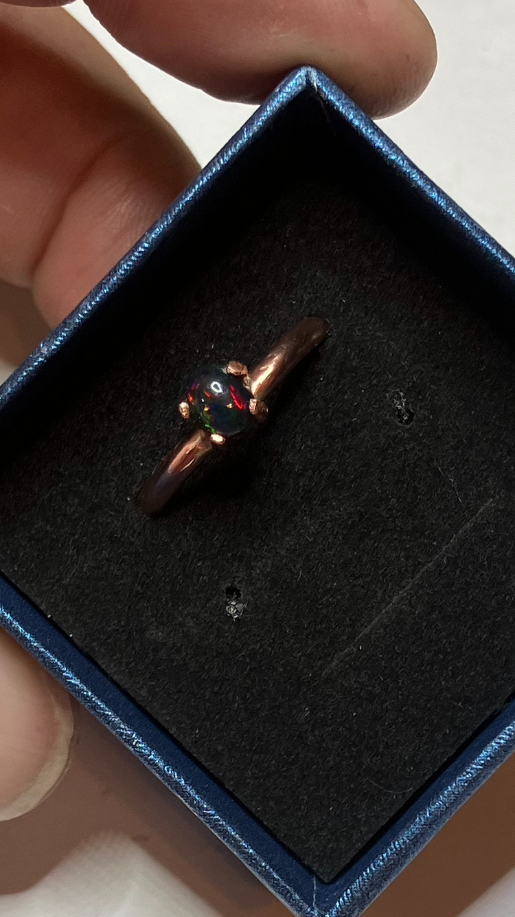 205B-Hand-Crafted Size 8 Copper Ring with a 0.55ct Smoked Ethiopian Welo Opal
