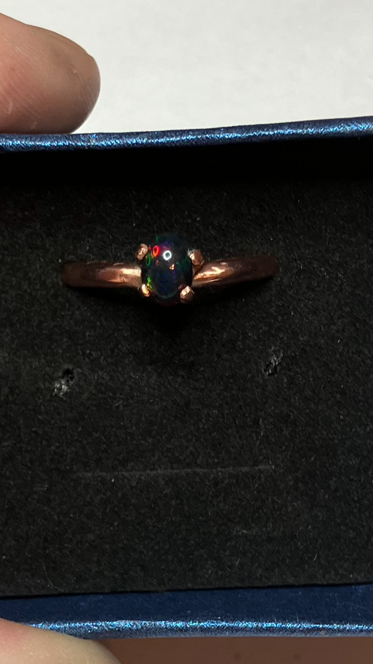 как выглядит 205B-Hand-Crafted Size 8 Copper Ring with a 0.55ct Smoked Ethiopian Welo Opal фото