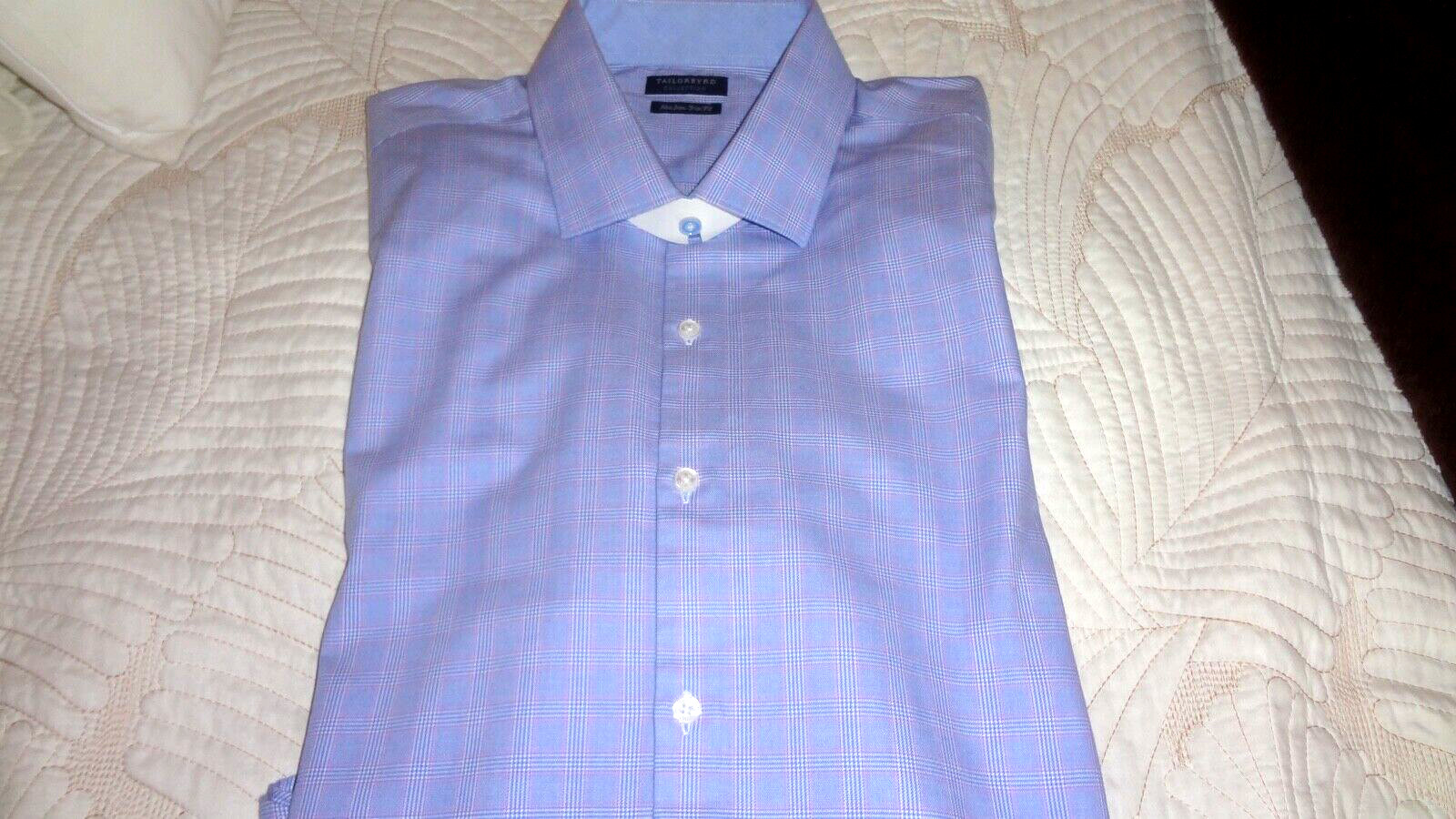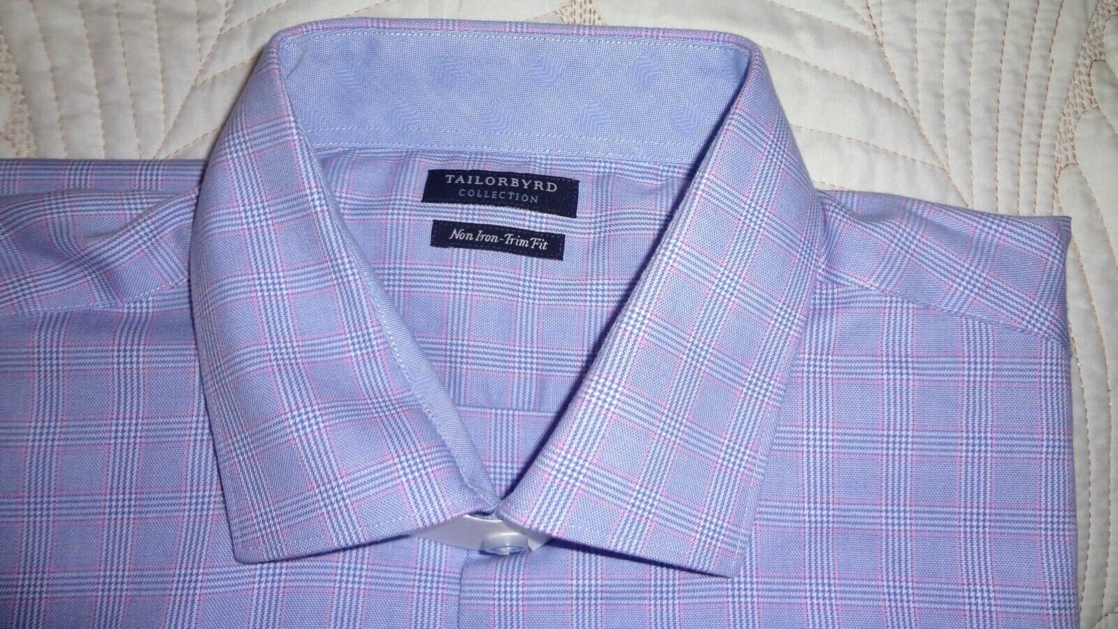 Tailorbyrd Dress Shirt Lavender Plaid Size L 100 Cotton Non-iron Trim Fit