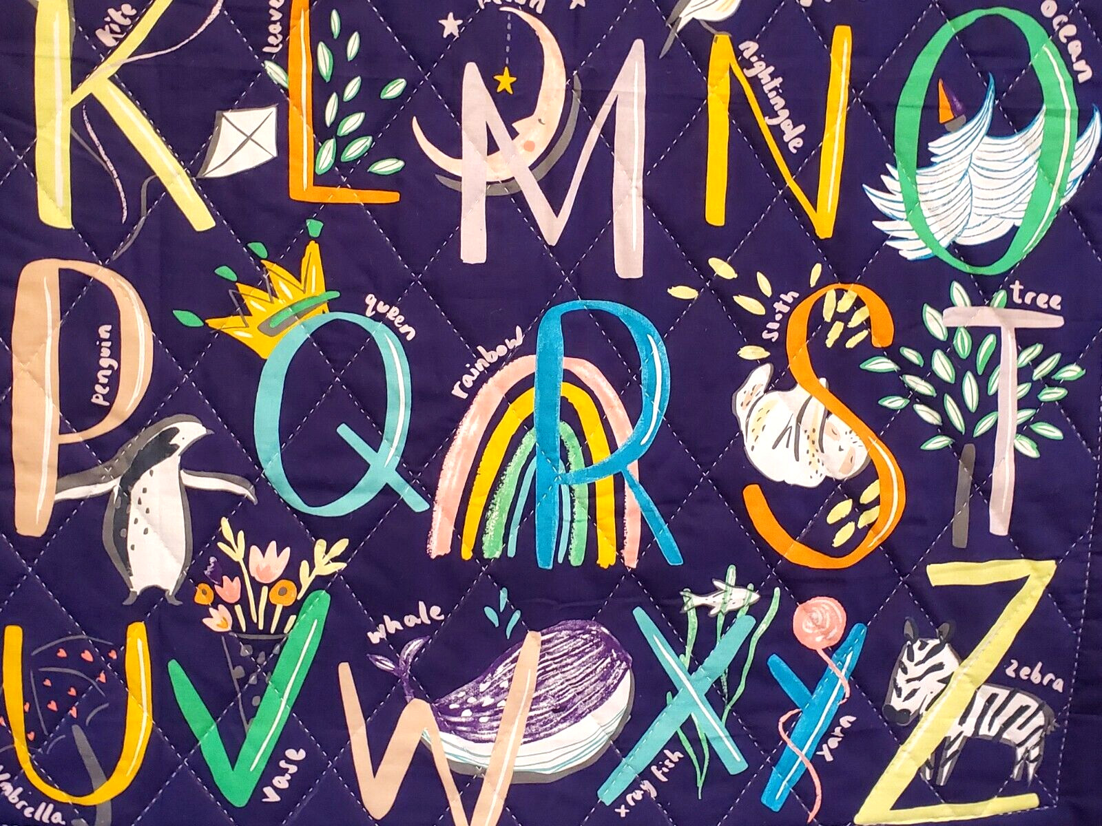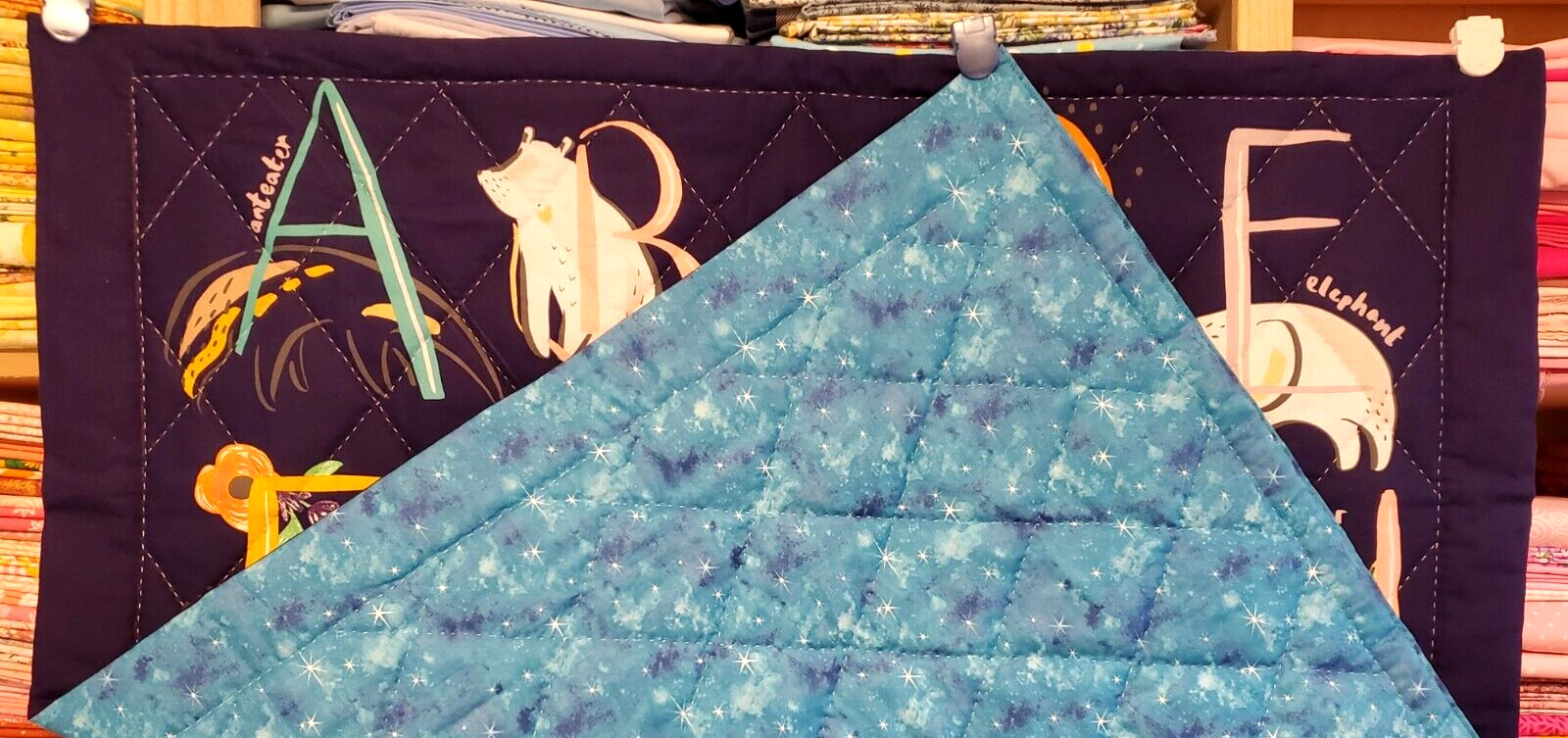 New Hand Made Hand Quilted ABC's on Blue Baby Blanket