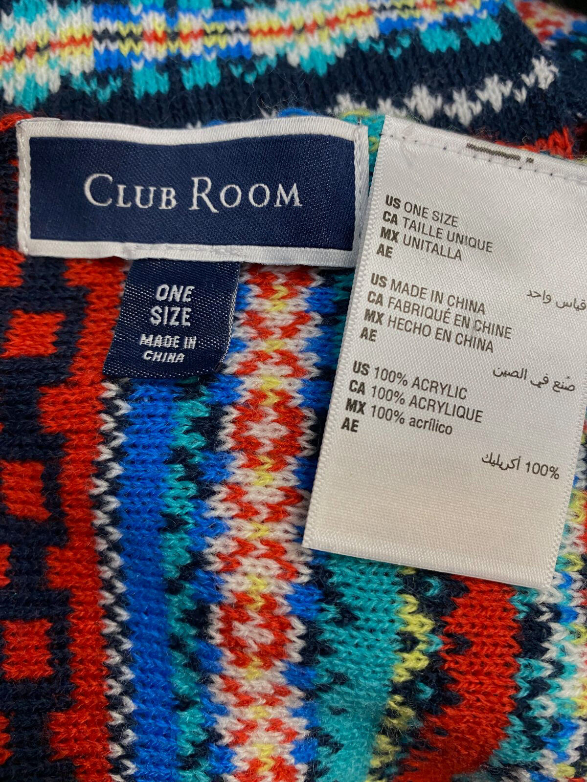 40 Club Room Mens Blue Reversible Geometric Pattern Knit Scarf Beanie Set OS