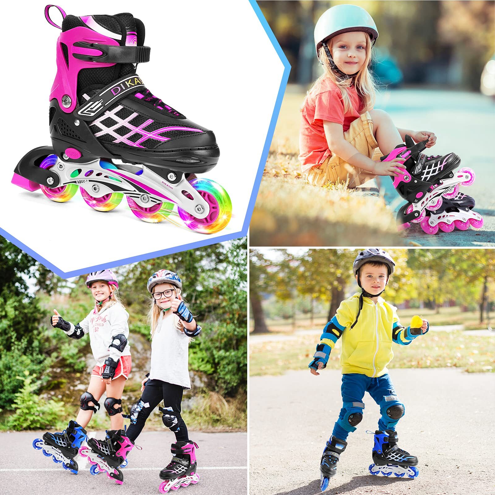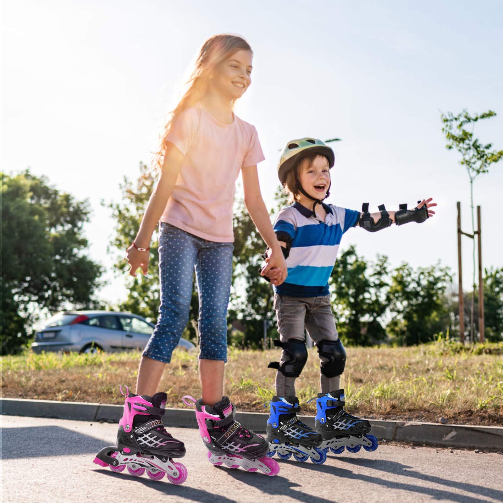New Kids Adjustable Inline Skates With Light Up Wheels for boys girls Blue