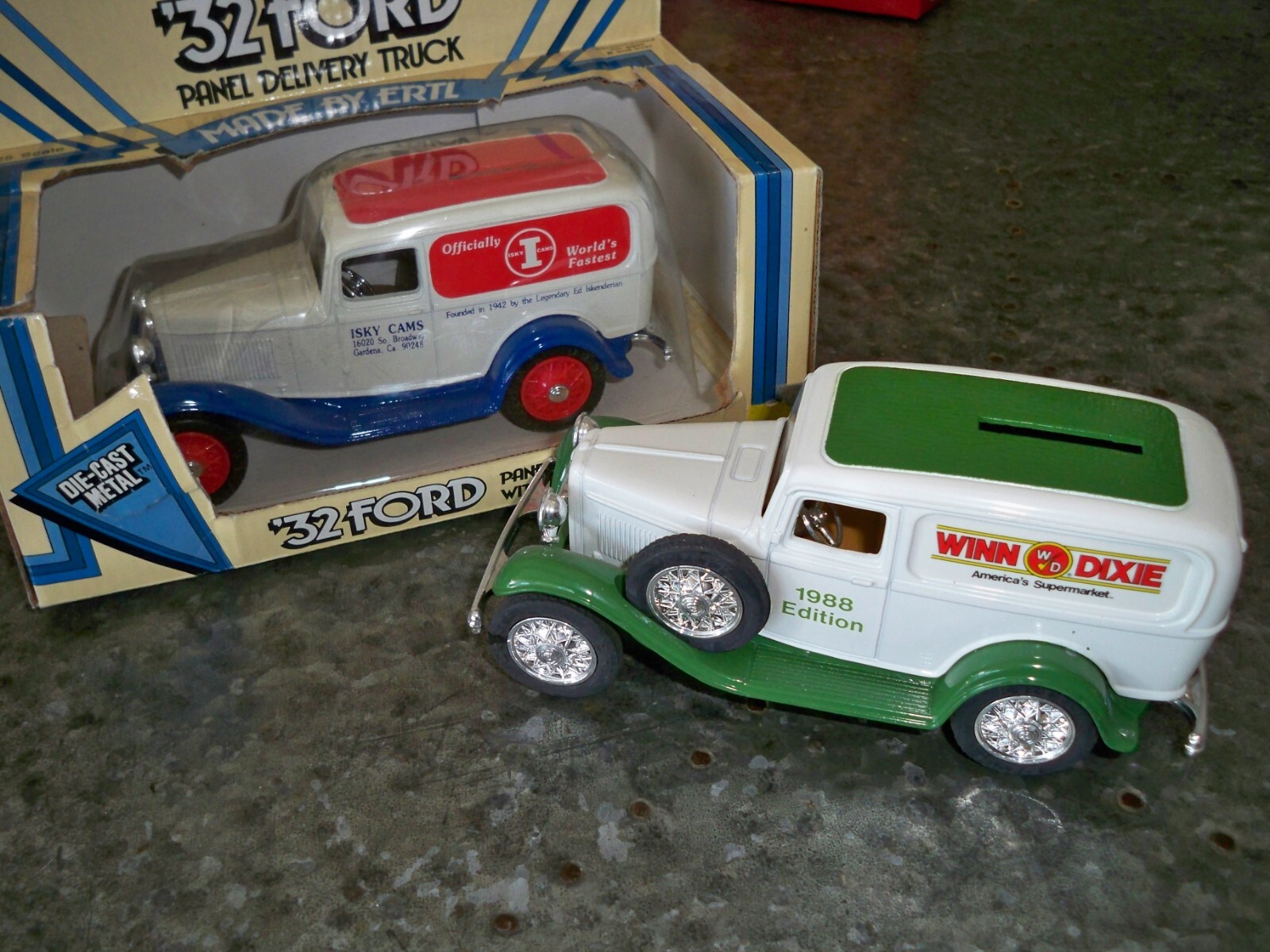 Pair of Ertl 1932 Ford Panel Delivery Banks Isky Cams Winn Dixie DieCast 1:25