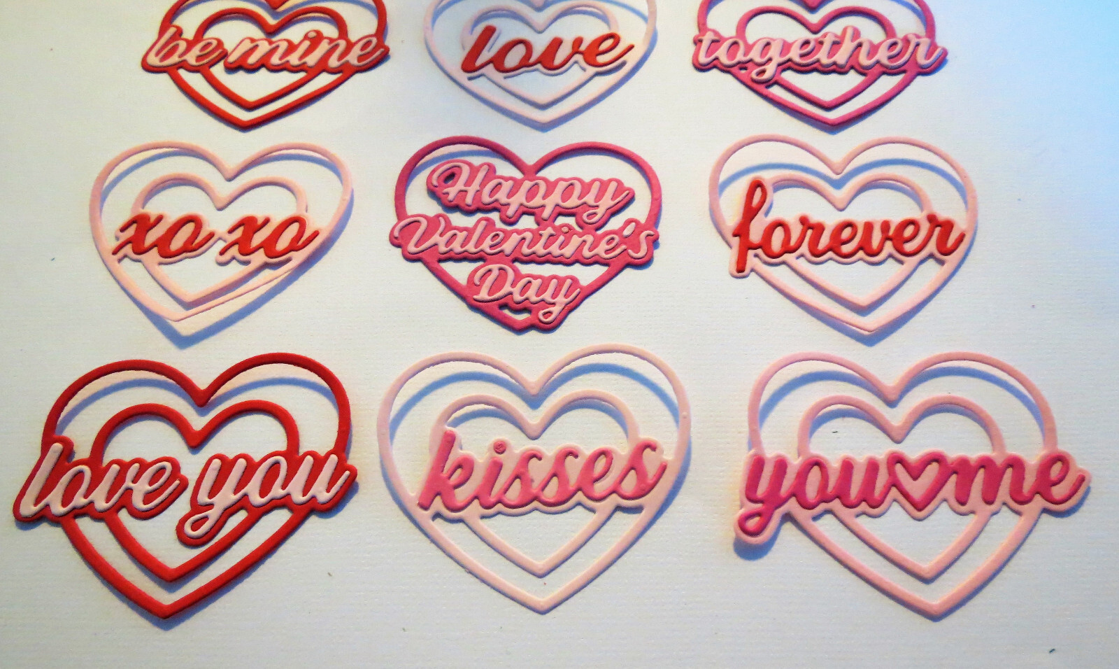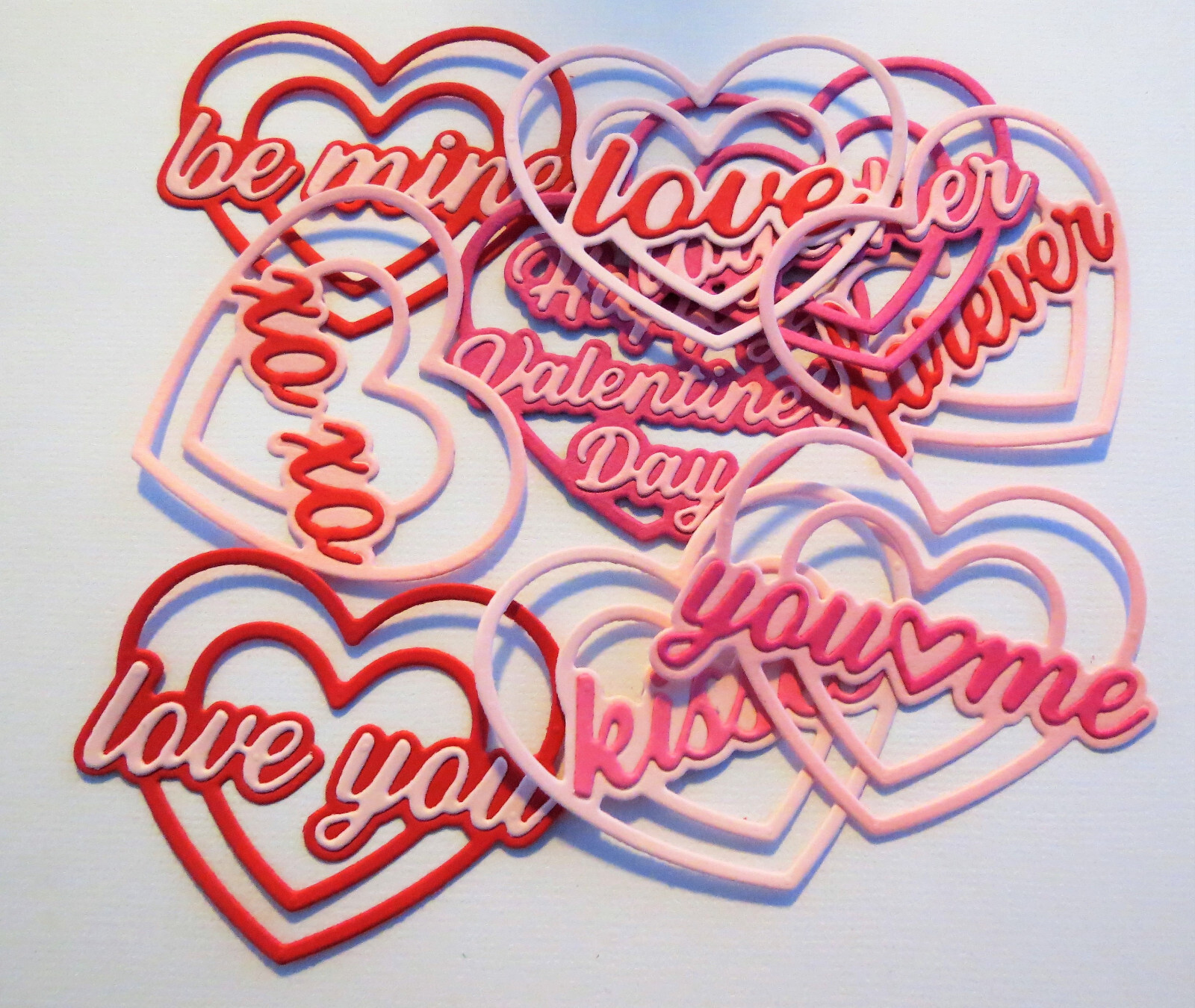 Valentines Hearts Layered 9 Paper Die Cut Scrapbook Embellishments Cardmaking