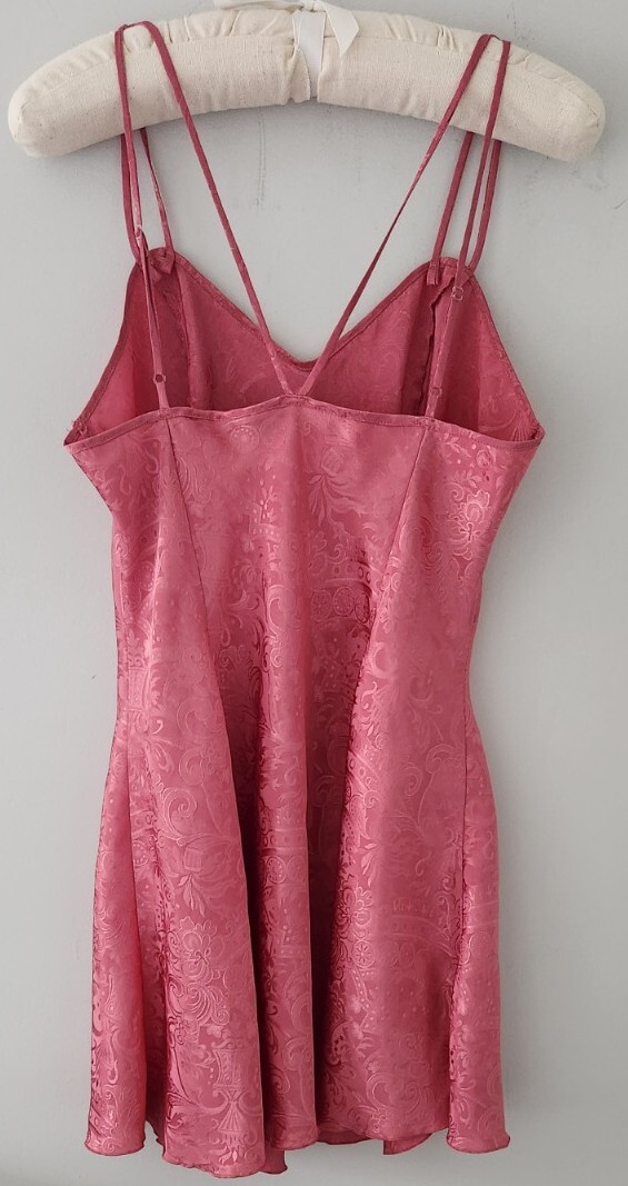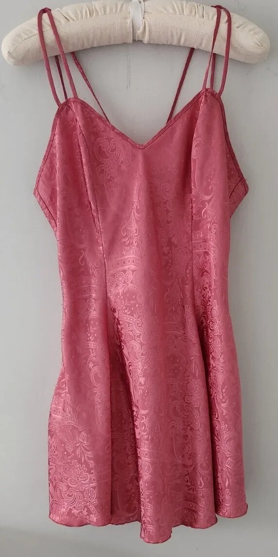 как выглядит Vtg 80s Victorias Secret Gold Label Pink Satin Silky Slip Dress Size M фото