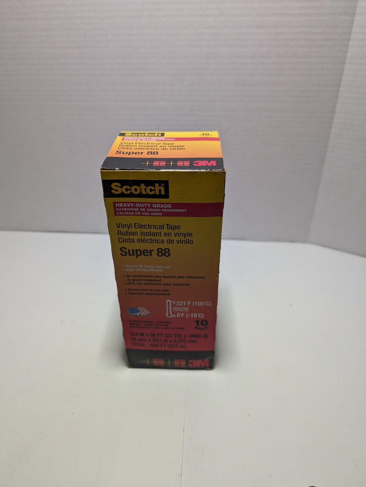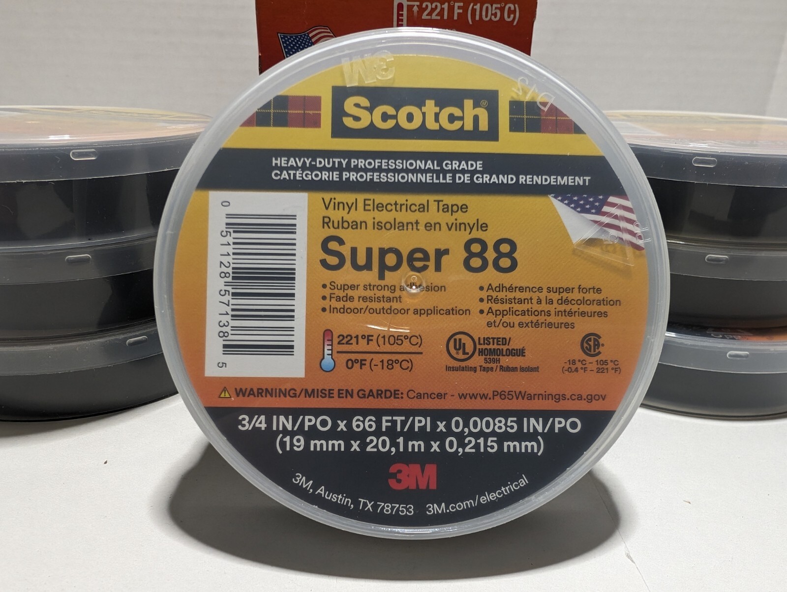 10 Rolls 3M Scotch Vinyl Electrical Tape Super-88, 3/4 in x 66 ft 22 yd
