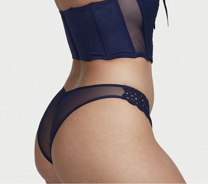 как выглядит NWT Victoria Secret Dream Angels Eyelet Lace Mesh Brazilian Panty Navy Blue XL фото