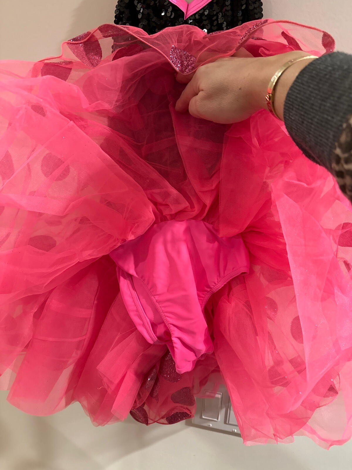как выглядит Tutu Child Large, Black Sequins, Hot Pink Polkadot Tulle Dance Tutu Costume фото