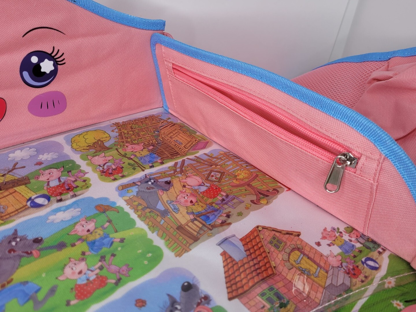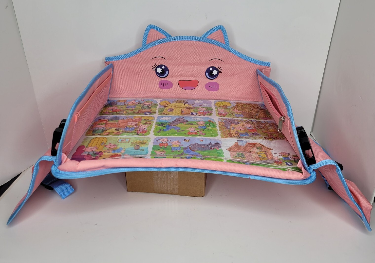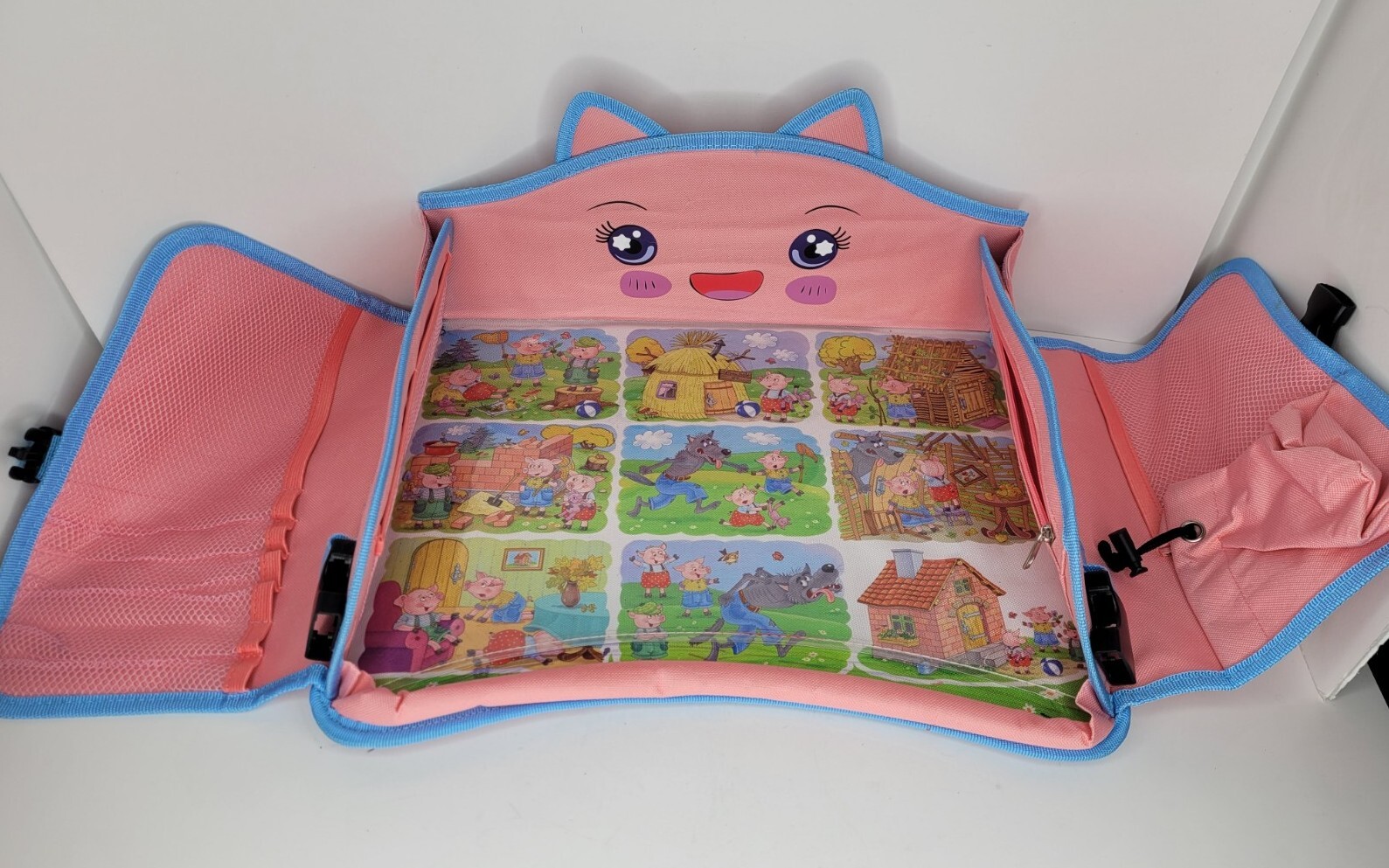 как выглядит Kids Travel Tray Portable Foldable 3 Little Pigs, Pink/Blue Pockets Carry Bag фото