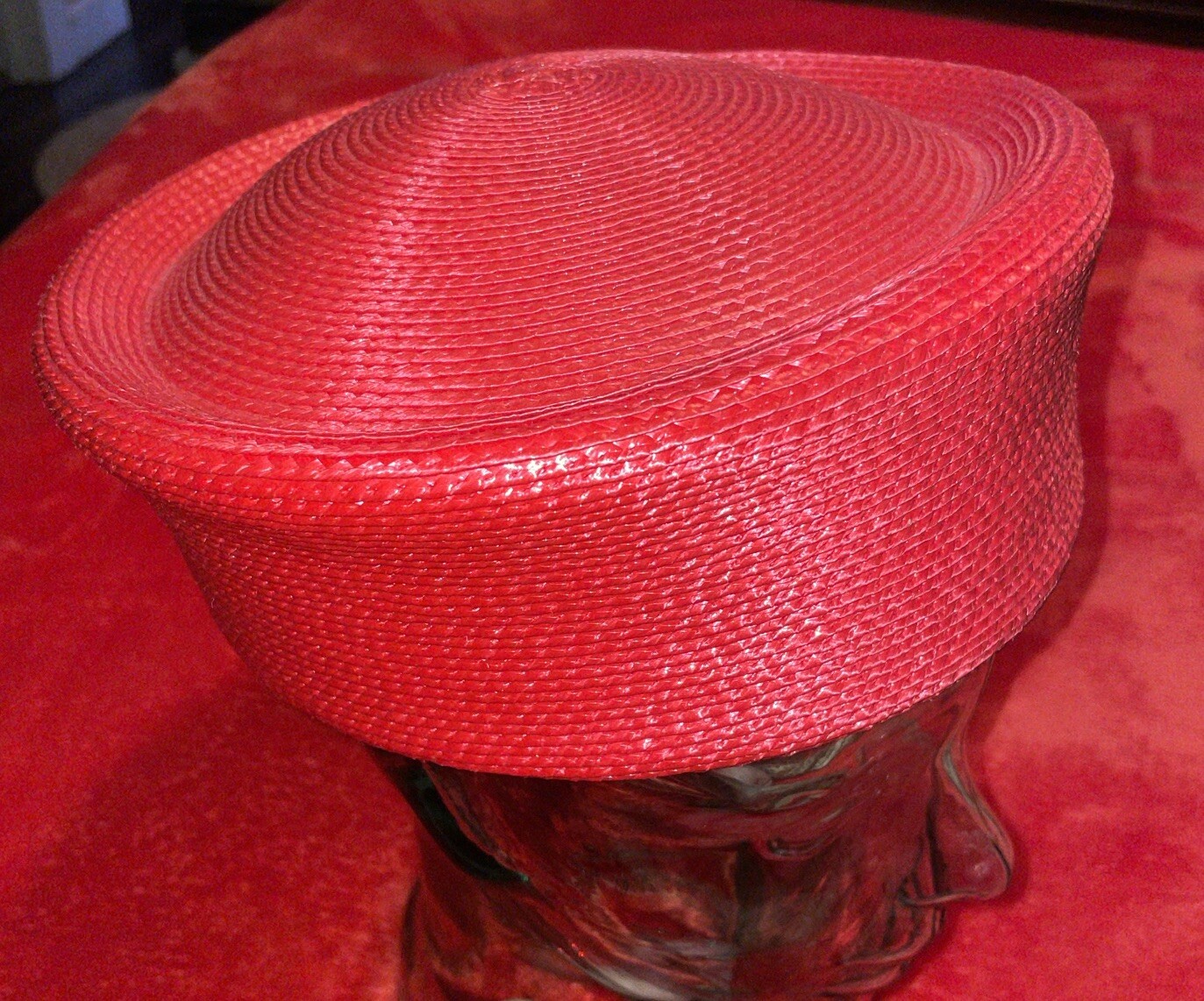 как выглядит Vintage Red Orange Colored Round Pill Hat Women s 100 Polypropylene фото