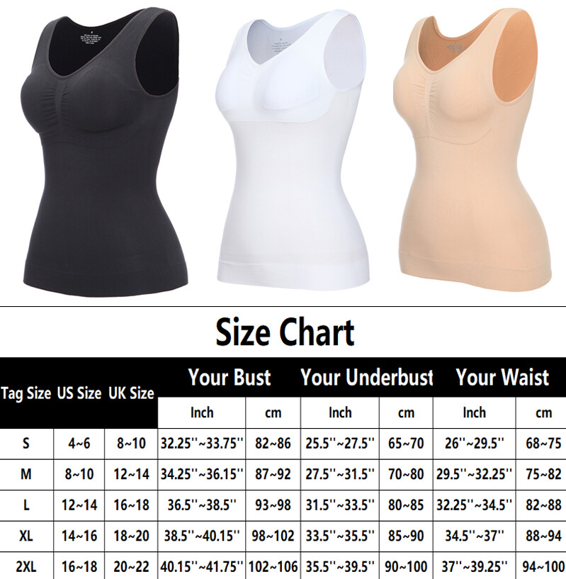 Women Tummy Control Body Shaper With Bra Cami Tank Tops Slimming Vest Shapewear