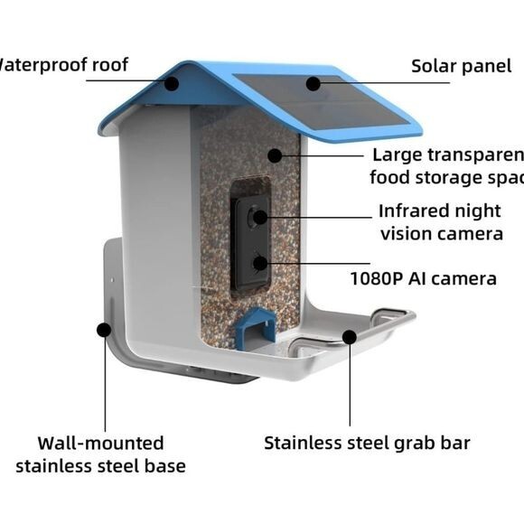 как выглядит Smart AI Recognition Bird Feeder HD Streaming Video Solar WiFi фото