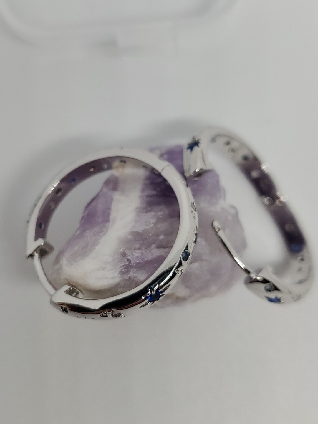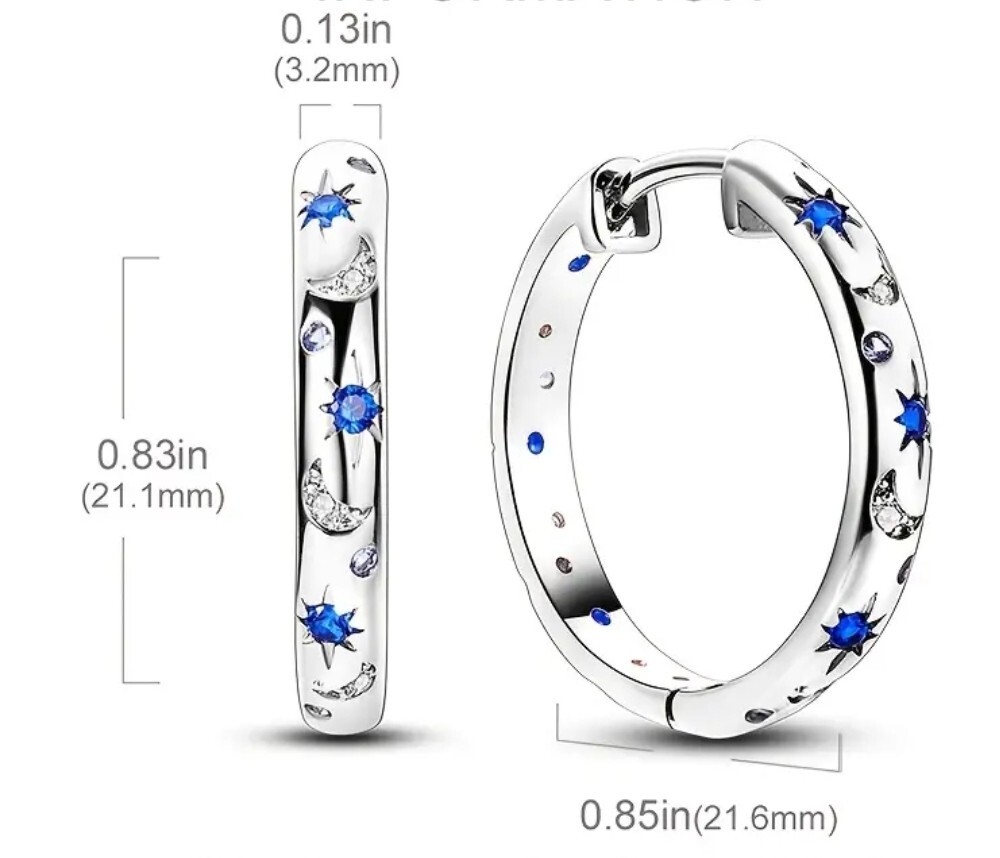 Moon And Stars Silver Cubiczirconium Hoop Earrings