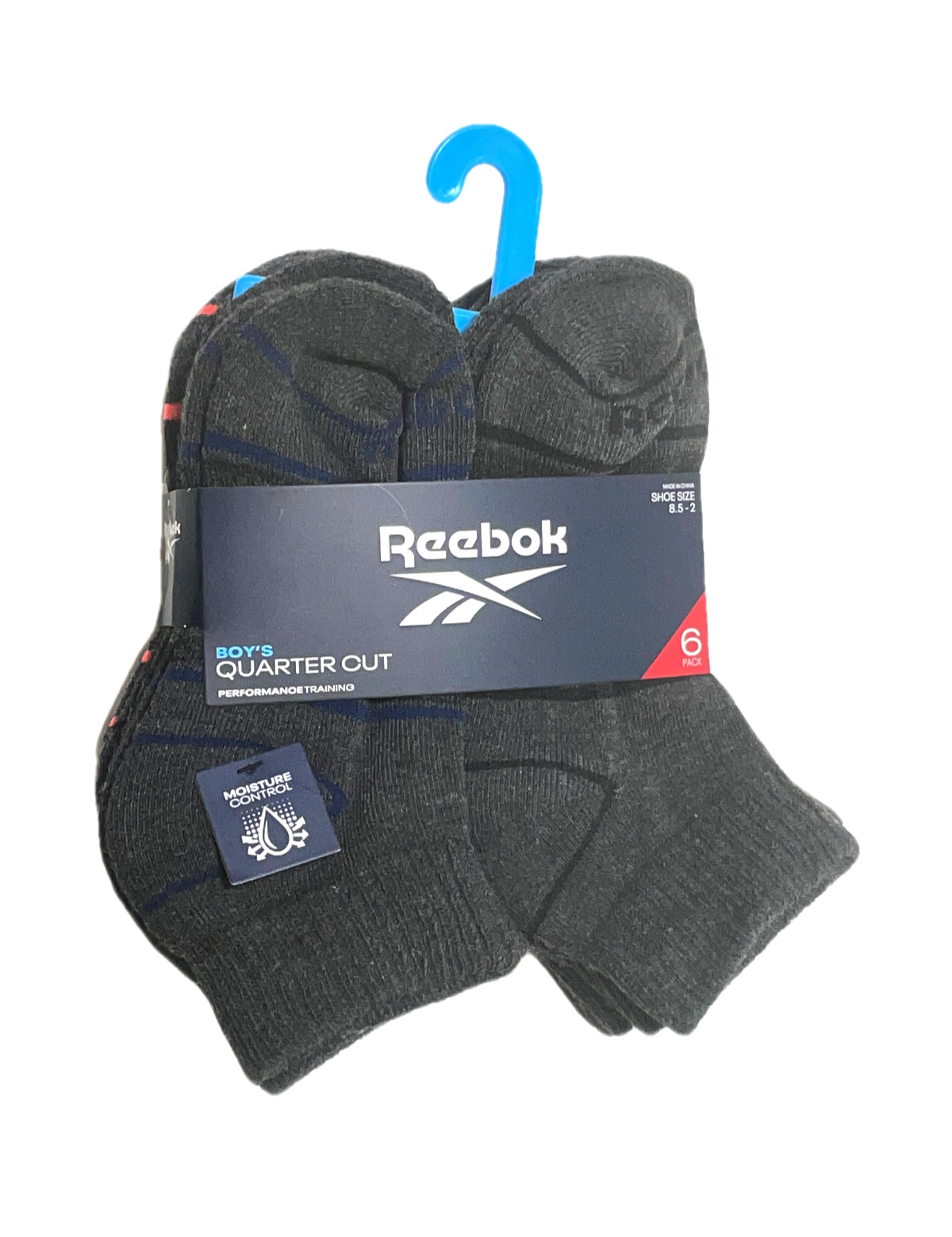 Reebok Quarter Socks Boys M 8.5-2 Performance Training Gray 6 Pairs Low Cut