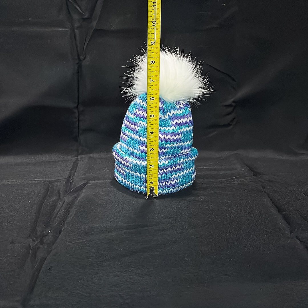 Baby Handmade 90s Cup Inspired Beanie Hat with a Faux Fur Pom-Pom
