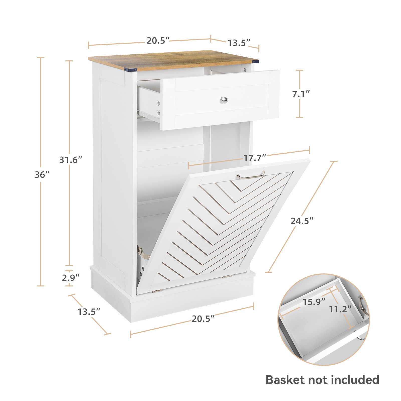 Tilt Out Trash Can Cabinet w/ Hidden Drawer for 10 Gallon Kitchen Island Storage