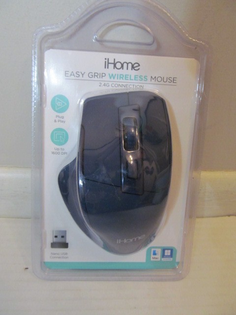 iHome Easy Grip Wireless Mouse w/Nano USB, Choose Black or Dark Blue Color