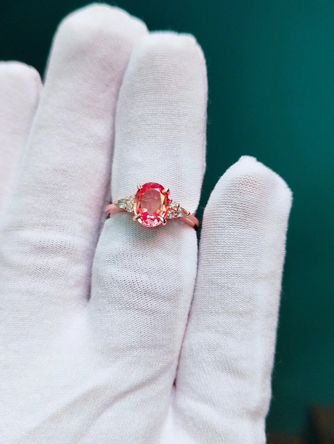 как выглядит Orange Sapphire Ring, Silver, Engagement ring, birthday Gift For Her фото