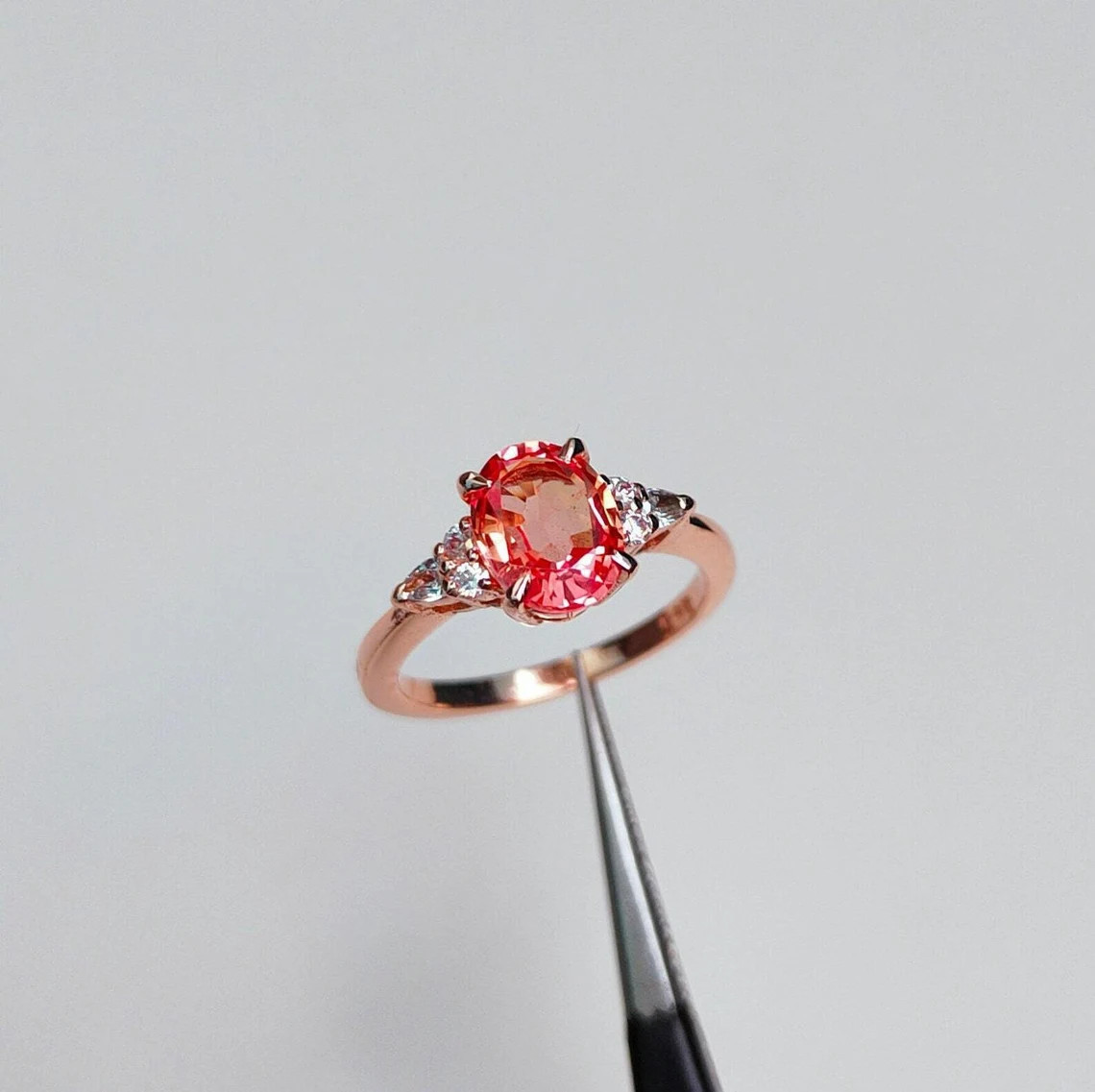 Orange Sapphire Ring, Silver, Engagement ring, birthday Gift For Her