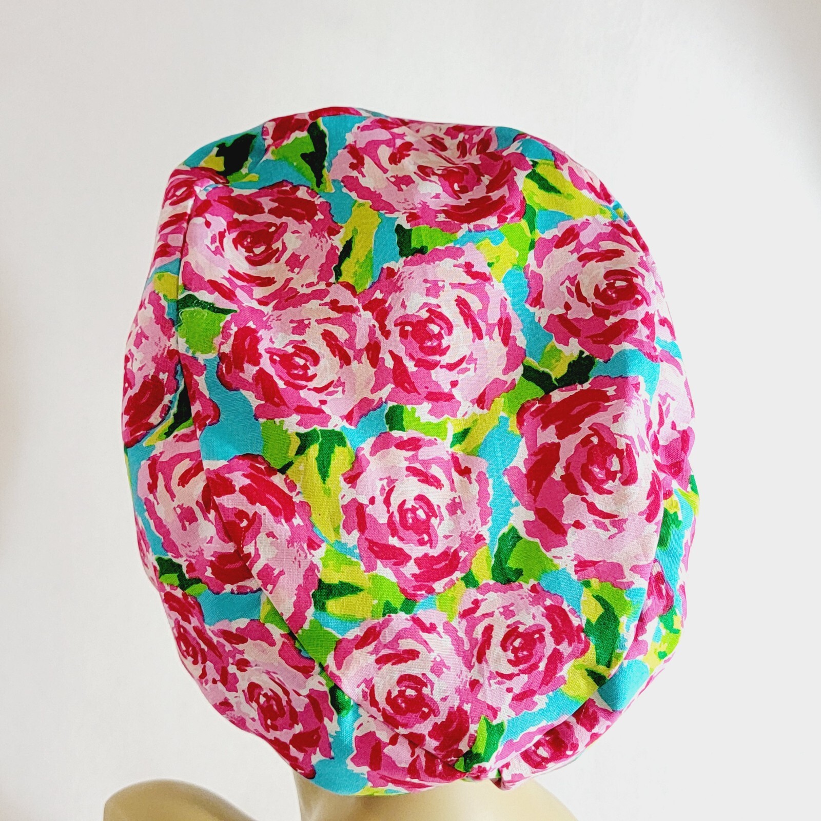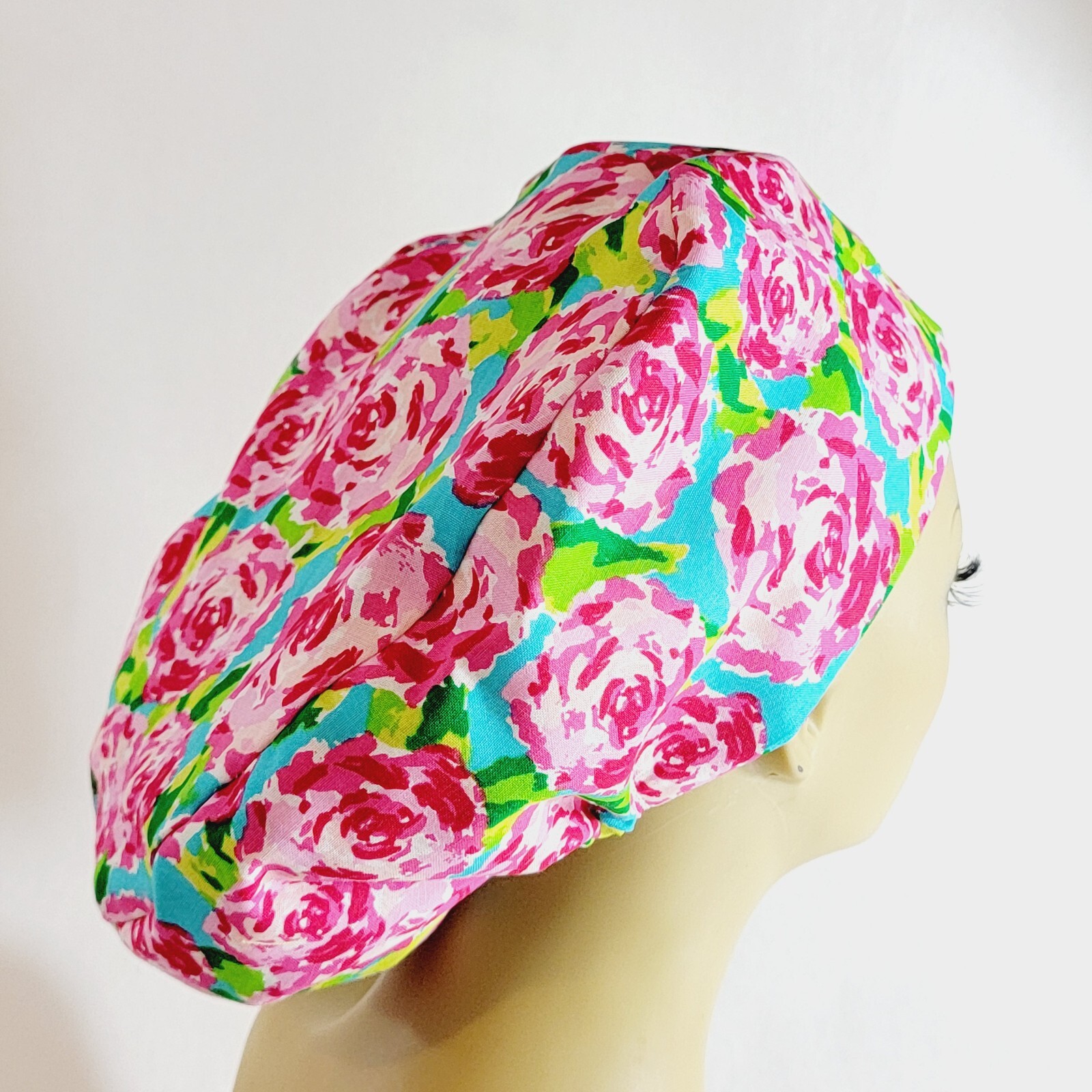 как выглядит Women Scrub Hat, Surgical Cap, Nurses Hat, Pink, Floral, Medical, USA Made фото